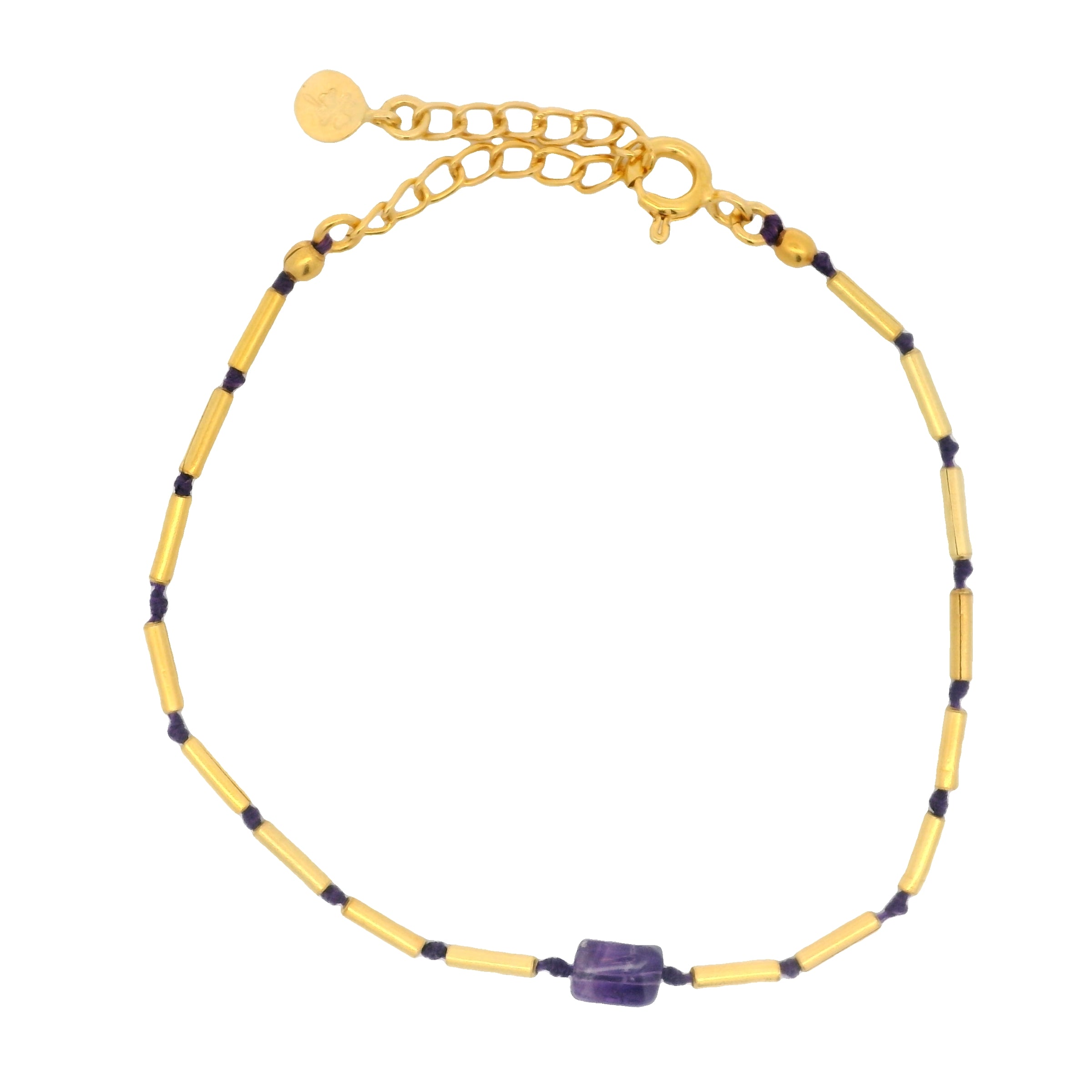 Bracelet doré en Améthyste et tubes dorés