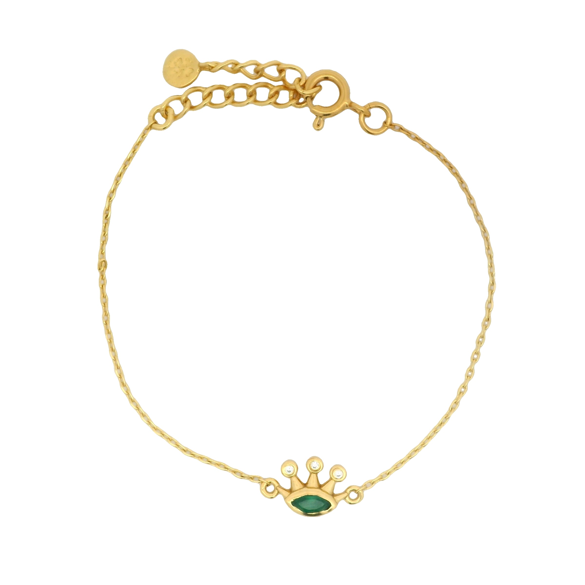 Bracelet doré oeil en onyx verte couronne en zircons blancs