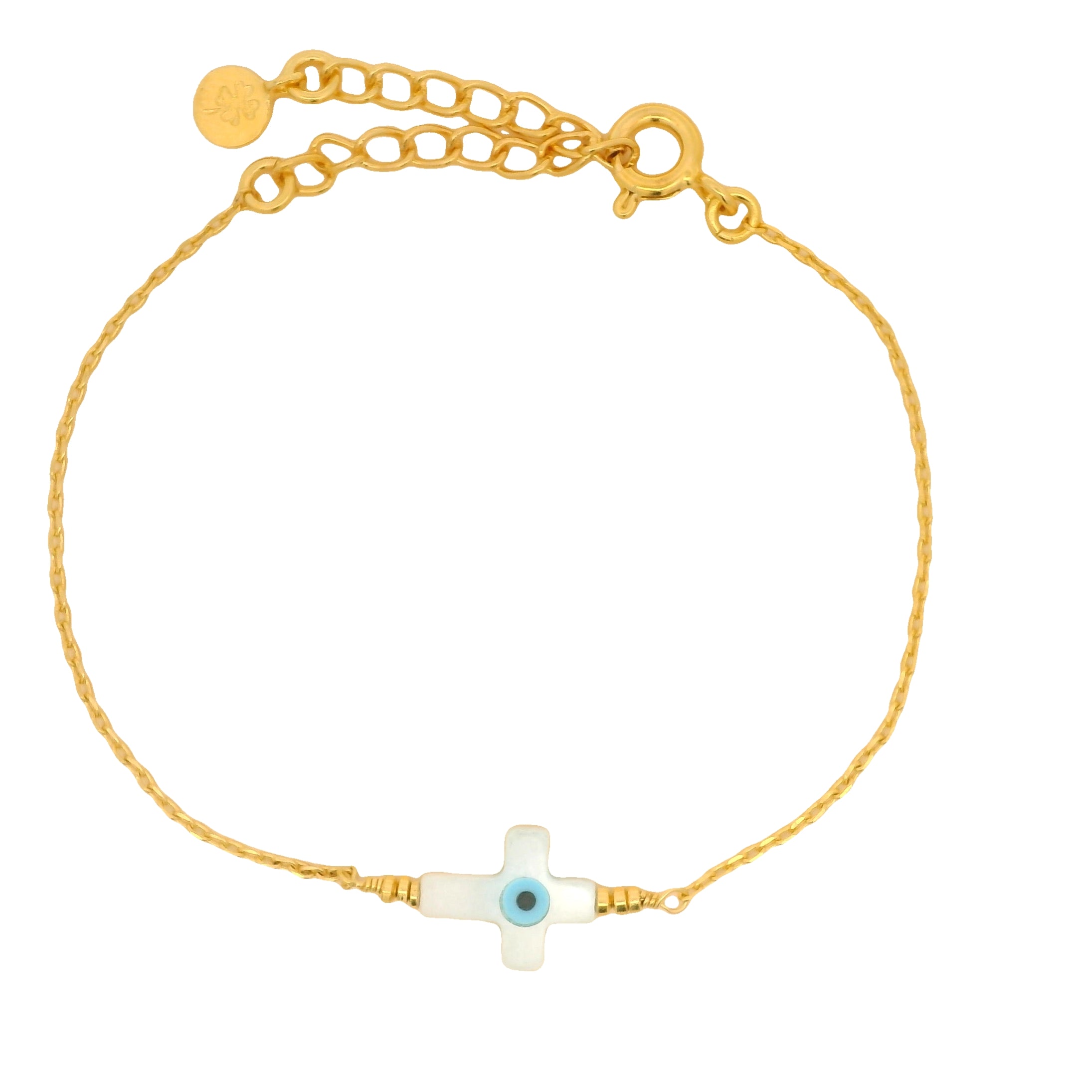 Bracelet doré avec croix oeil en nacre et disques dorés