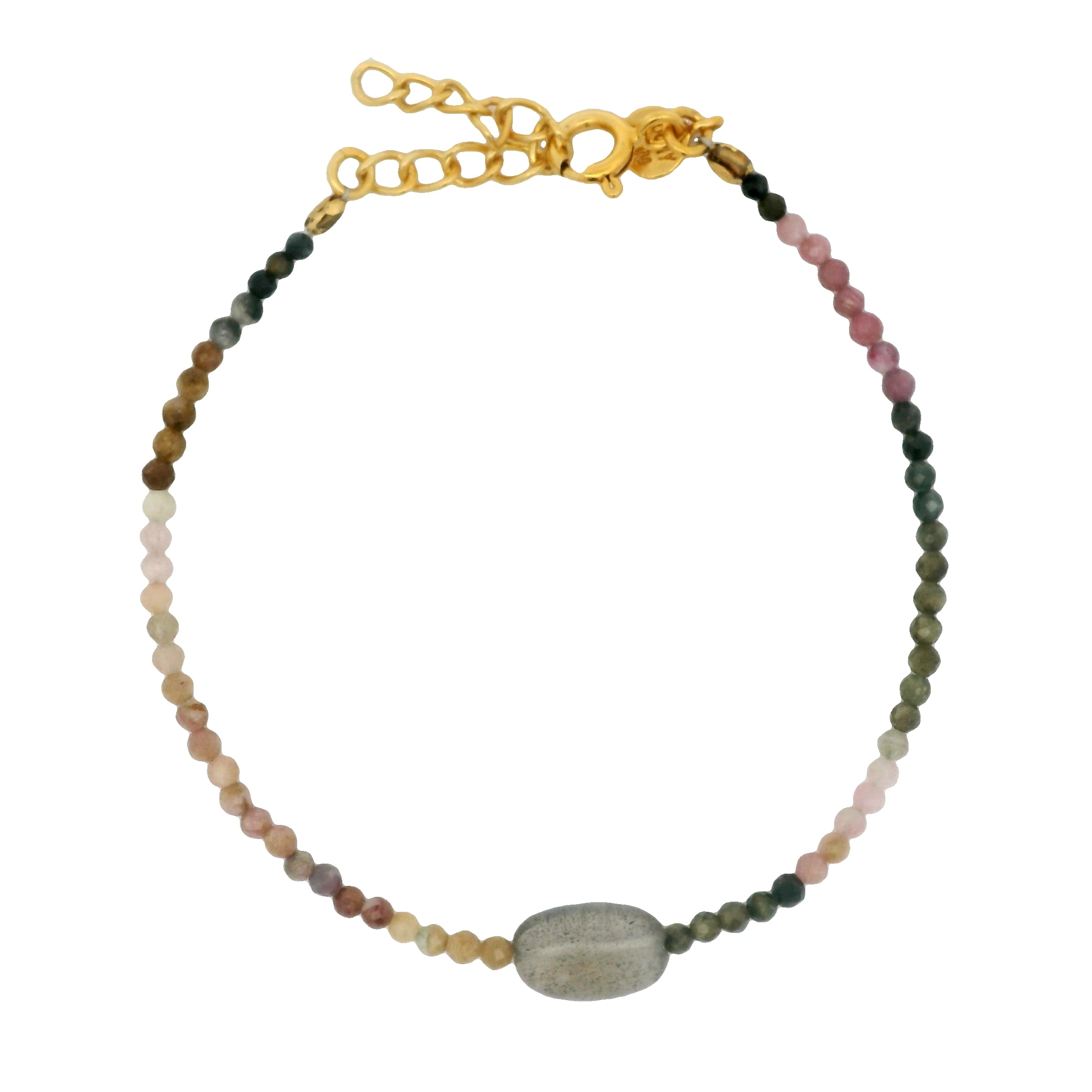 Bracelet doré duo de pierres labradorite et Tourmaline