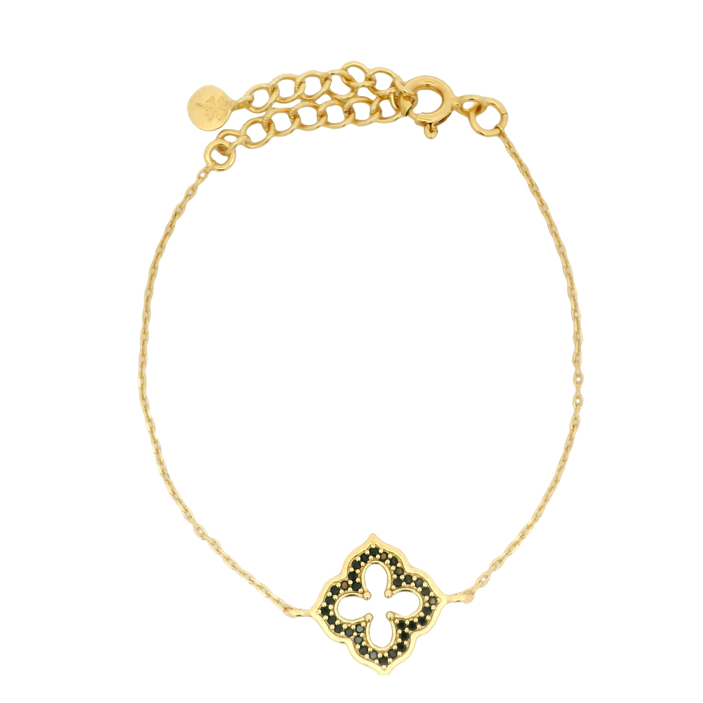Fleur arabesque ornée de zircons noirs : 15 mm x 15 mm