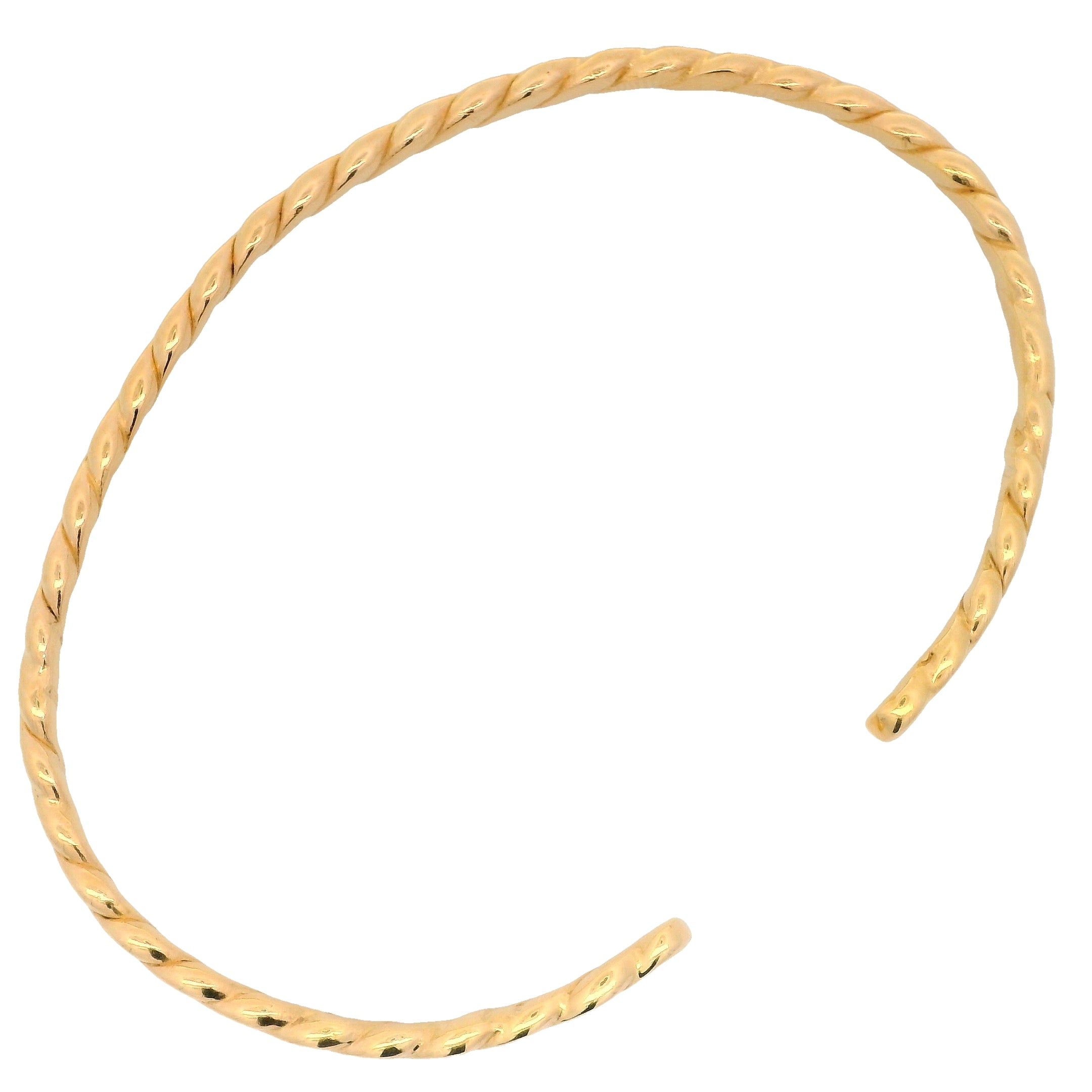 Bracelet jonc plat torsadé ouvert en laiton doré à l'or fin 18k