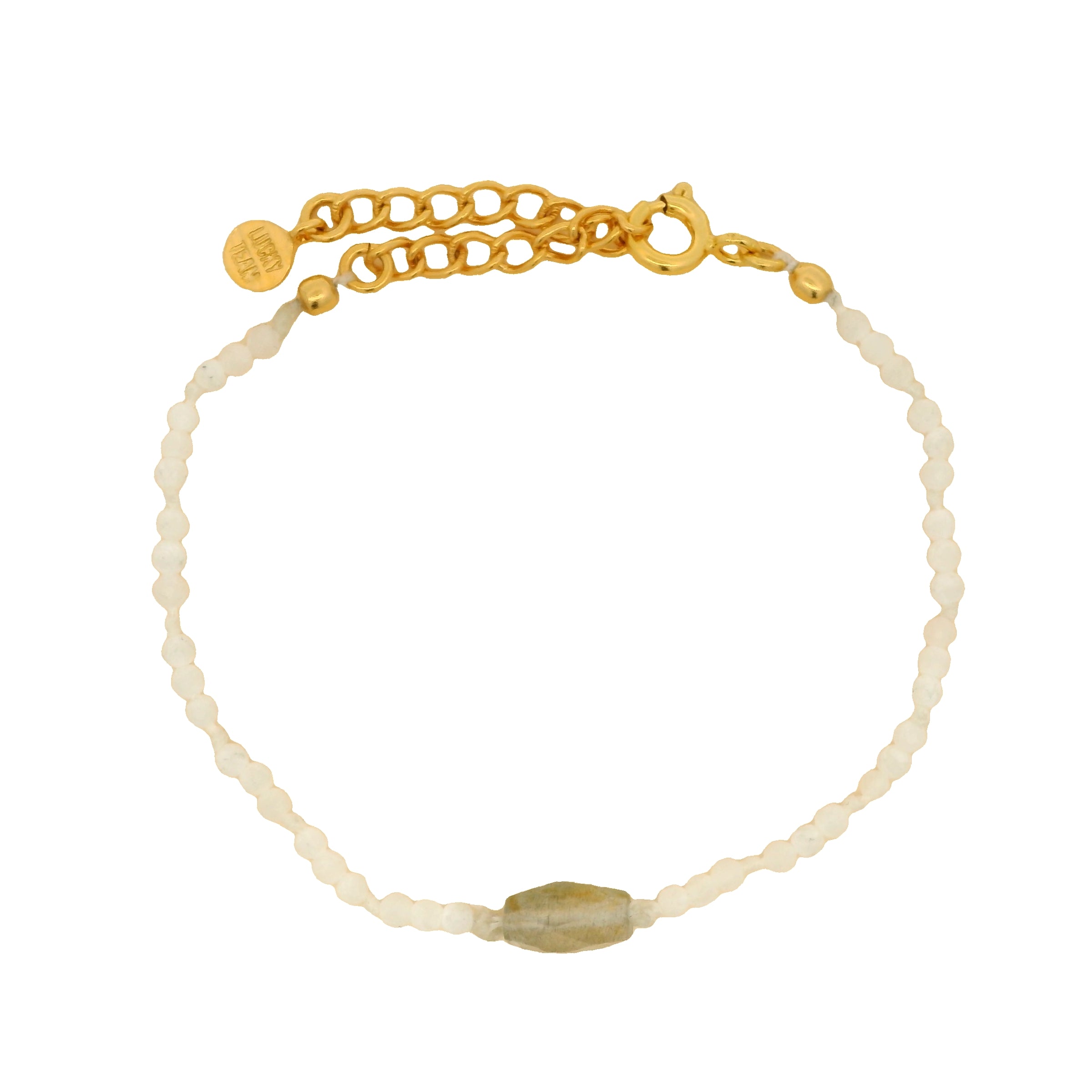 Bracelet doré avec labradorite ovale facettée et pierre de lune autour