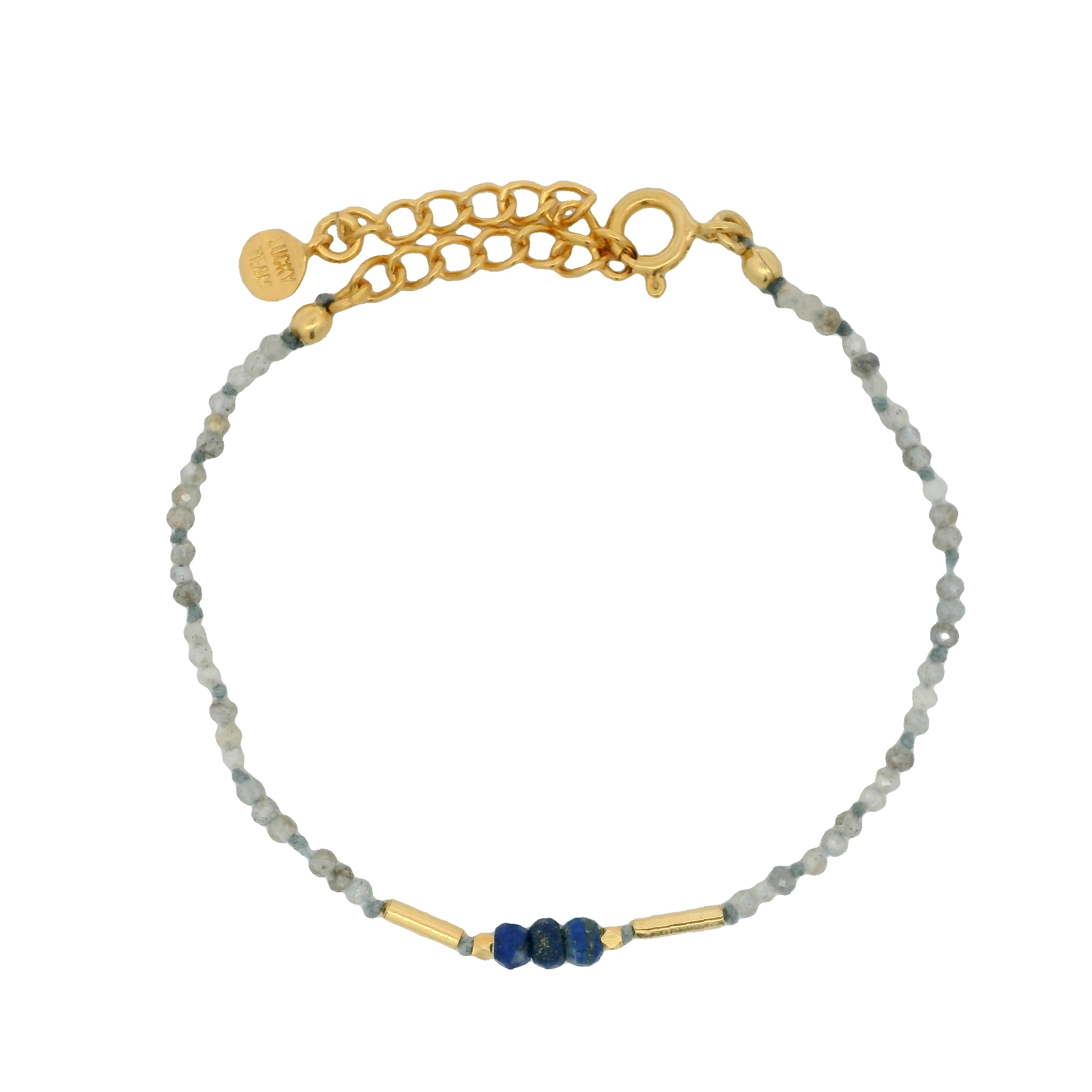 Bracelet doré en lapis lazulis, labradorite, tubes et disques dorés