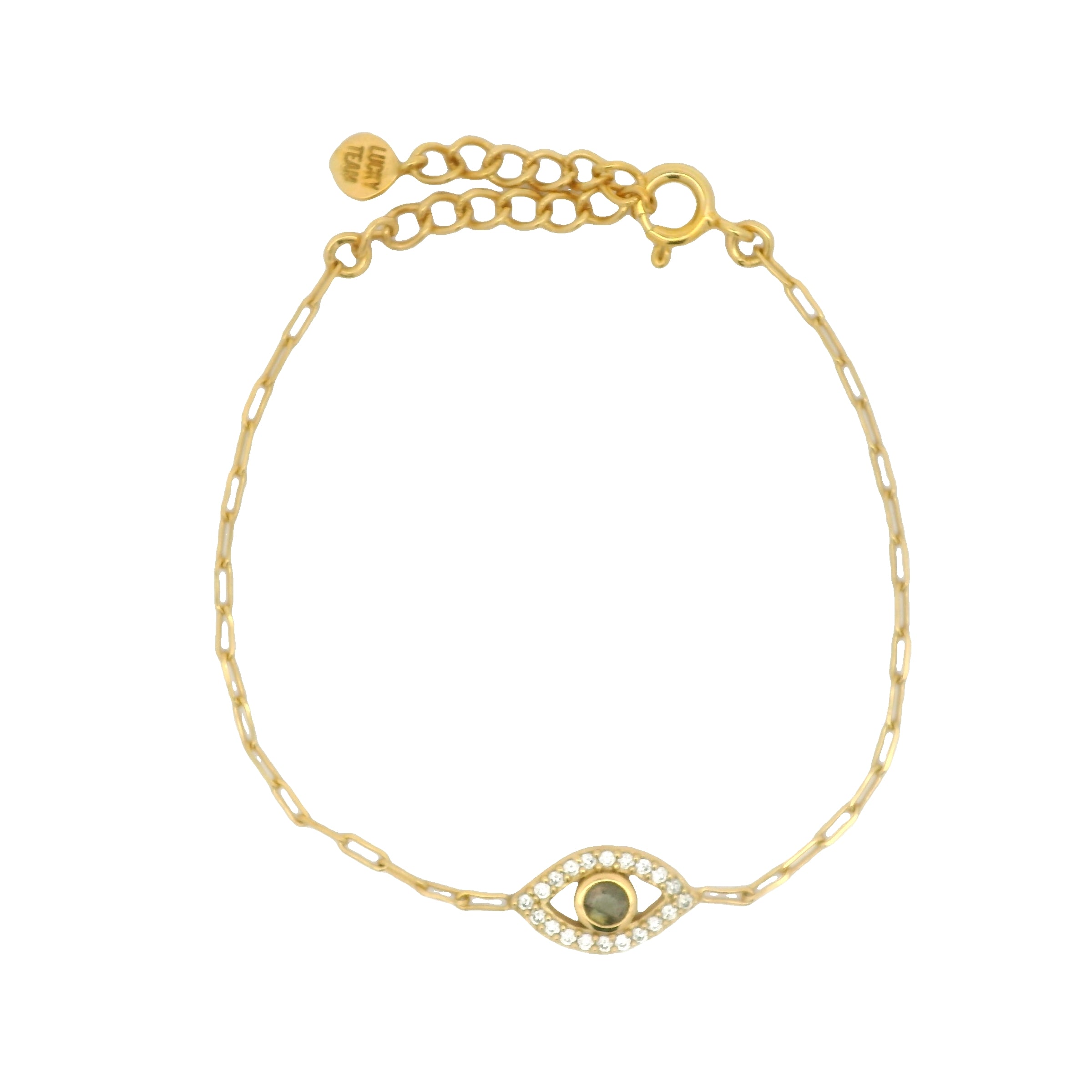 Bracelet doré maille rectangle oeil en labradorite et zircons blancs