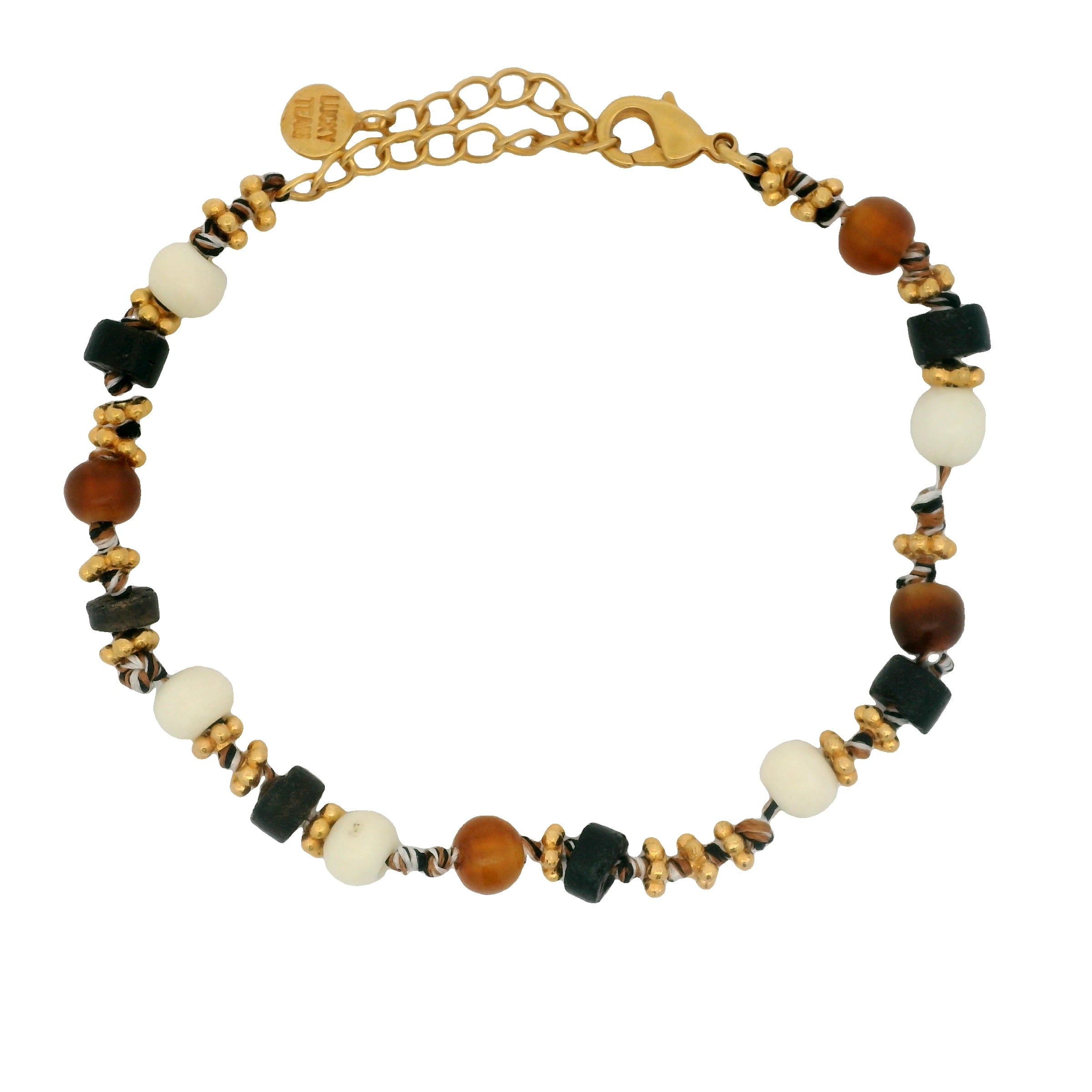 Bracelet doré mix perles de coco, os et corne