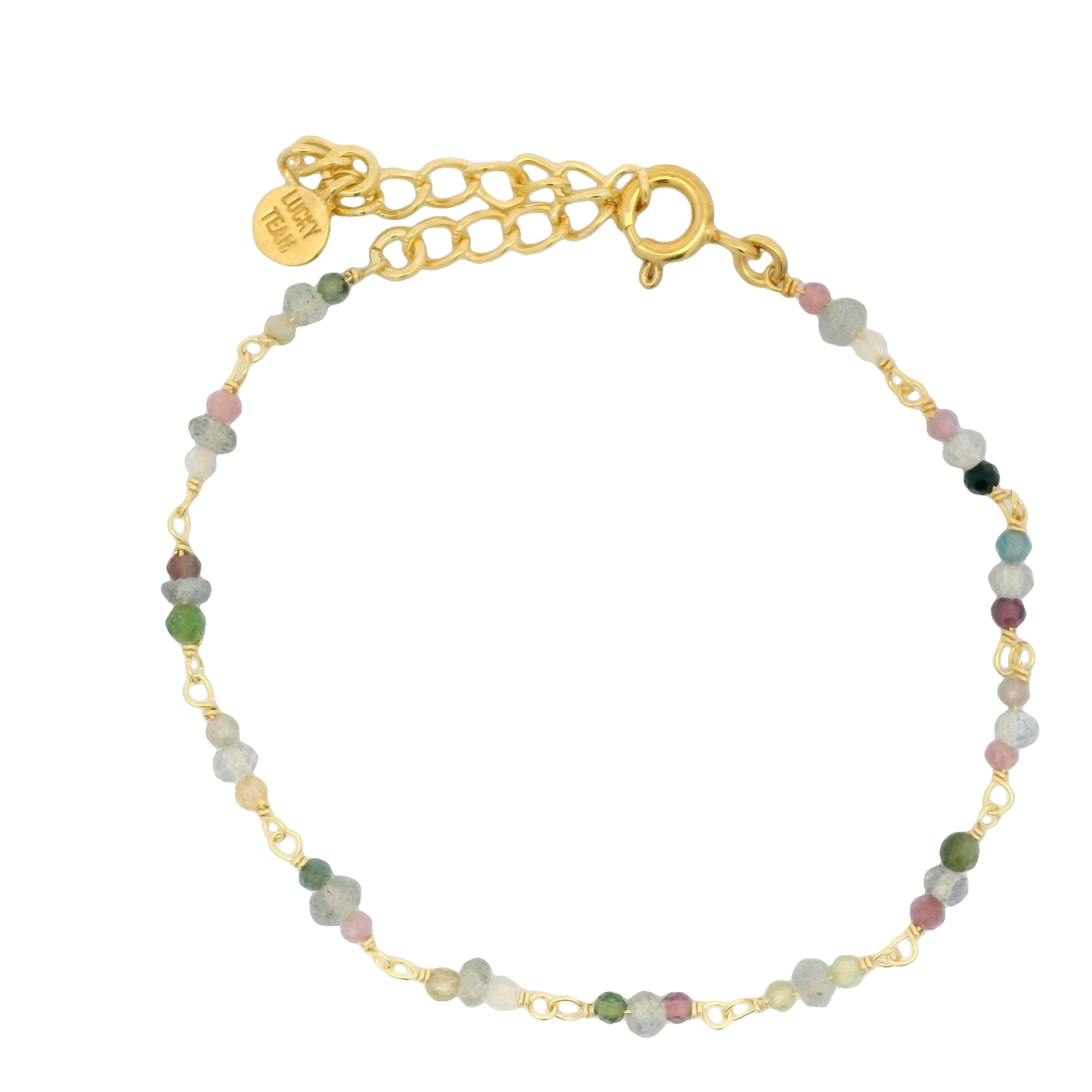 Bracelet doré mix de petites pierres en labradorite et tourmaline