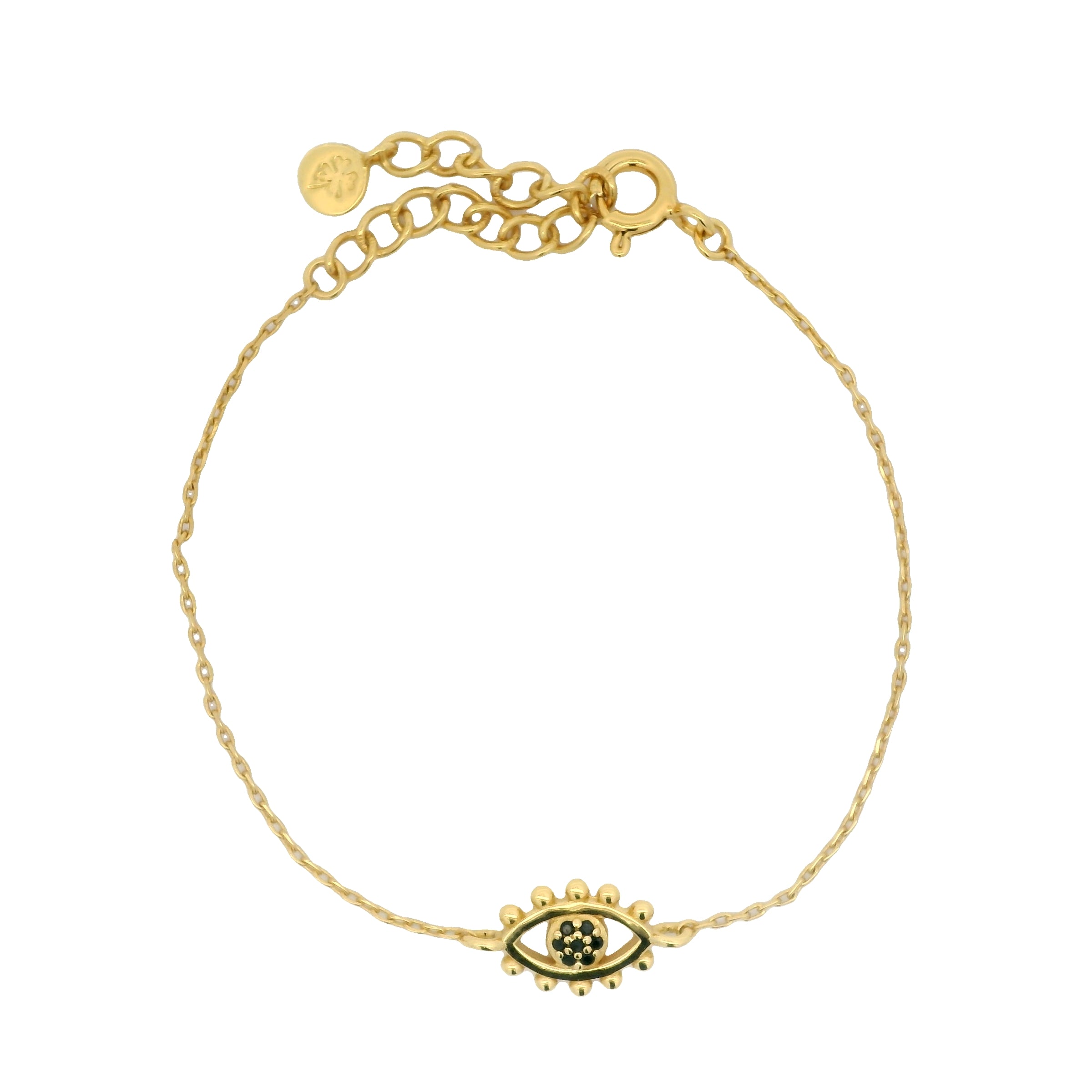 Bracelet doré oeil cils en boules et zircons noirs