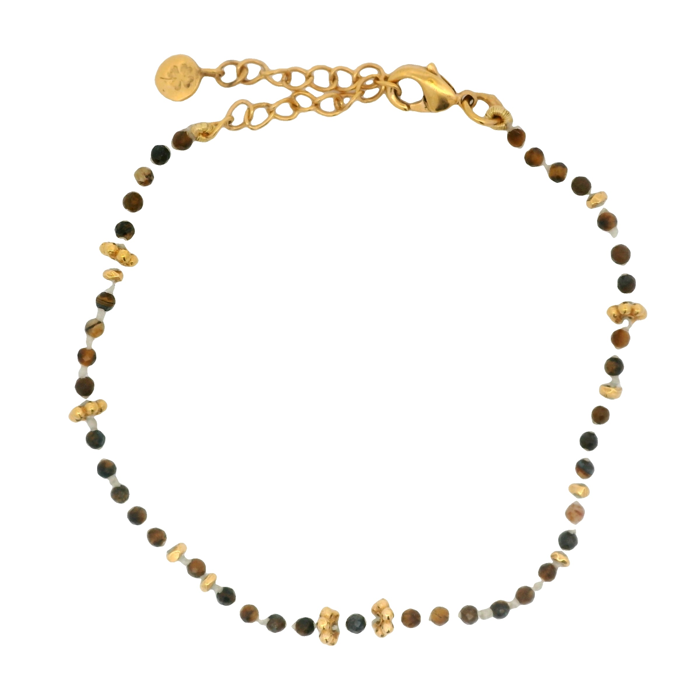 Bracelet doré Oeil de tigre avec boules et couronnes dorées