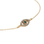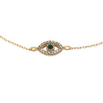 Oeil ovale avec zircons blancs et onyx verte au centre : 11 mm x 6 mm