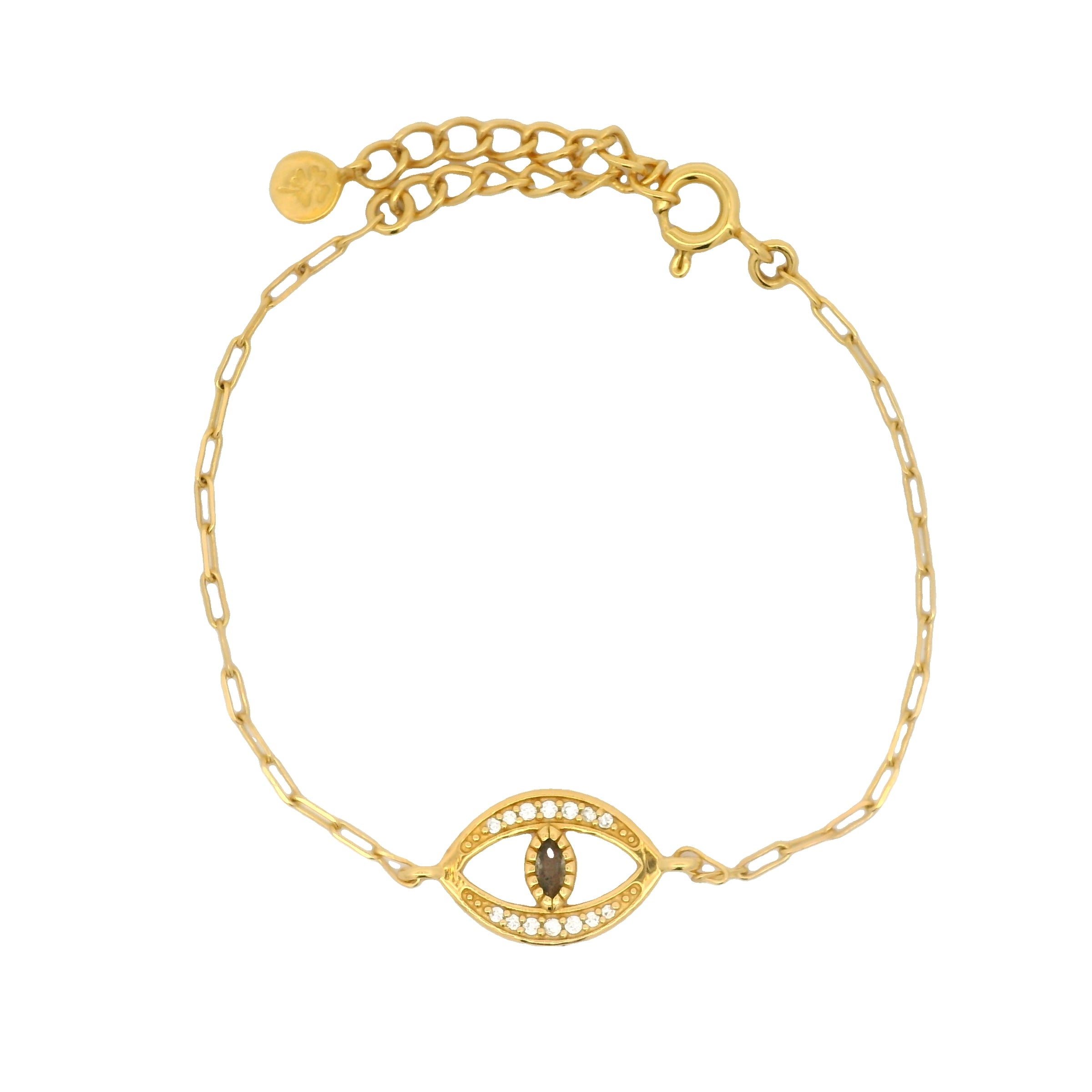 Bracelet doré oeil évidé en labradorite avec zircons blancs