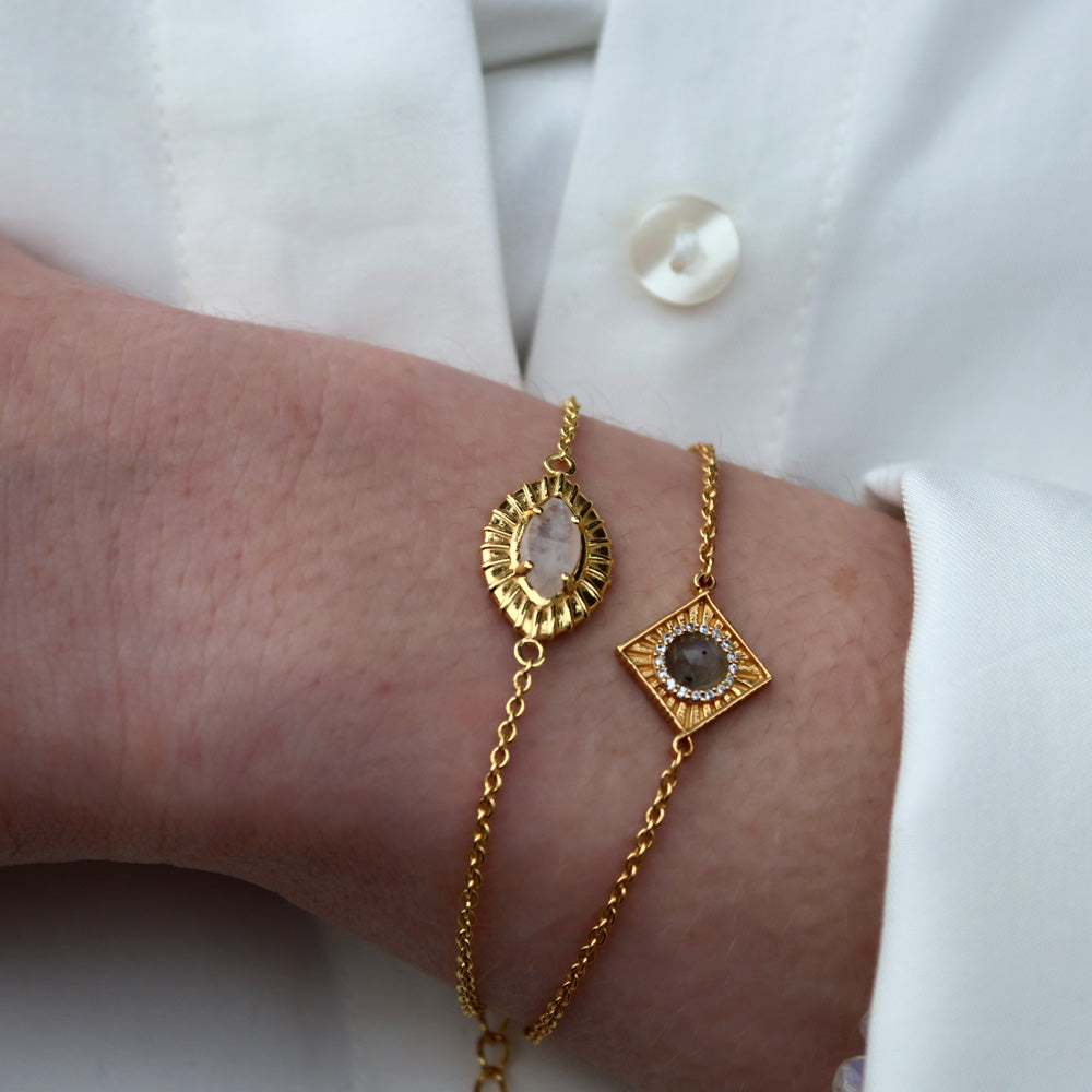 Bracelet en laiton doré à l'or fin 18k et pierre naturelle taillée en oeil.