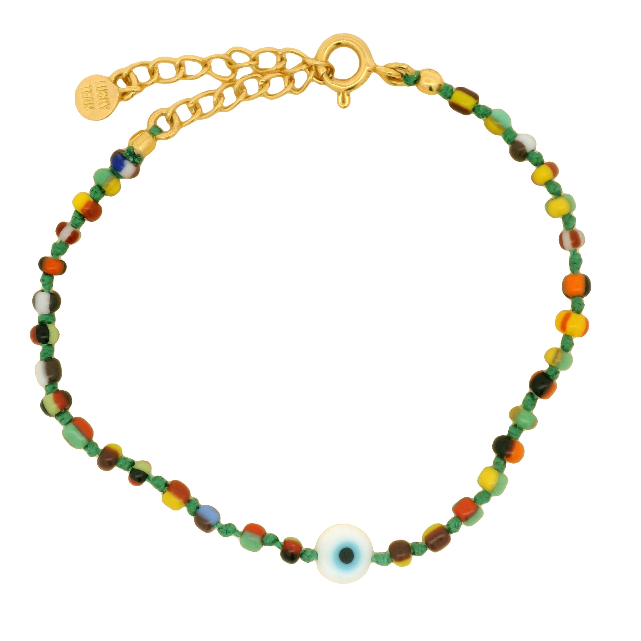 Bracelet doré petit oeil blanc avec perles multicolores