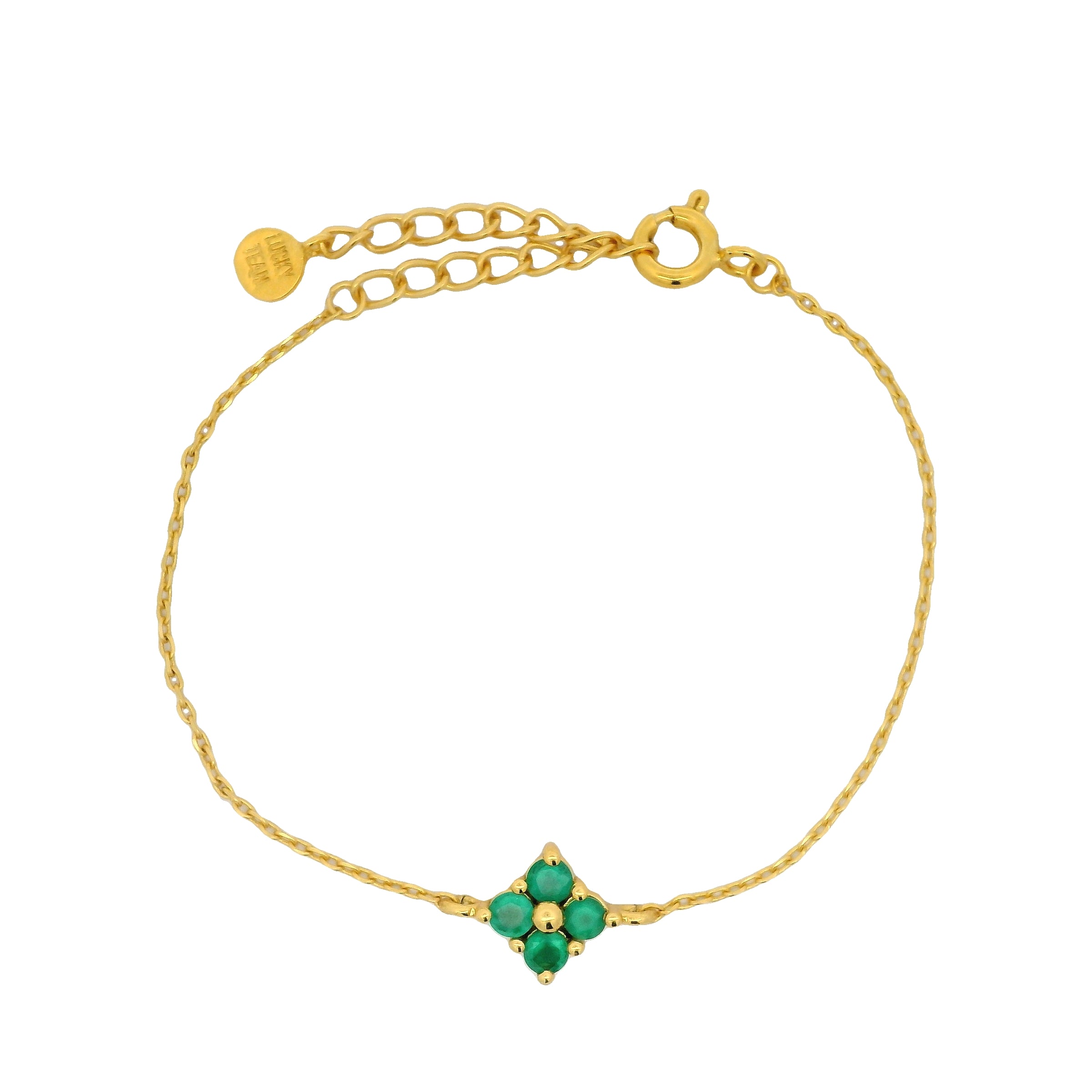 Bracelet doré petite fleur en onyx verte