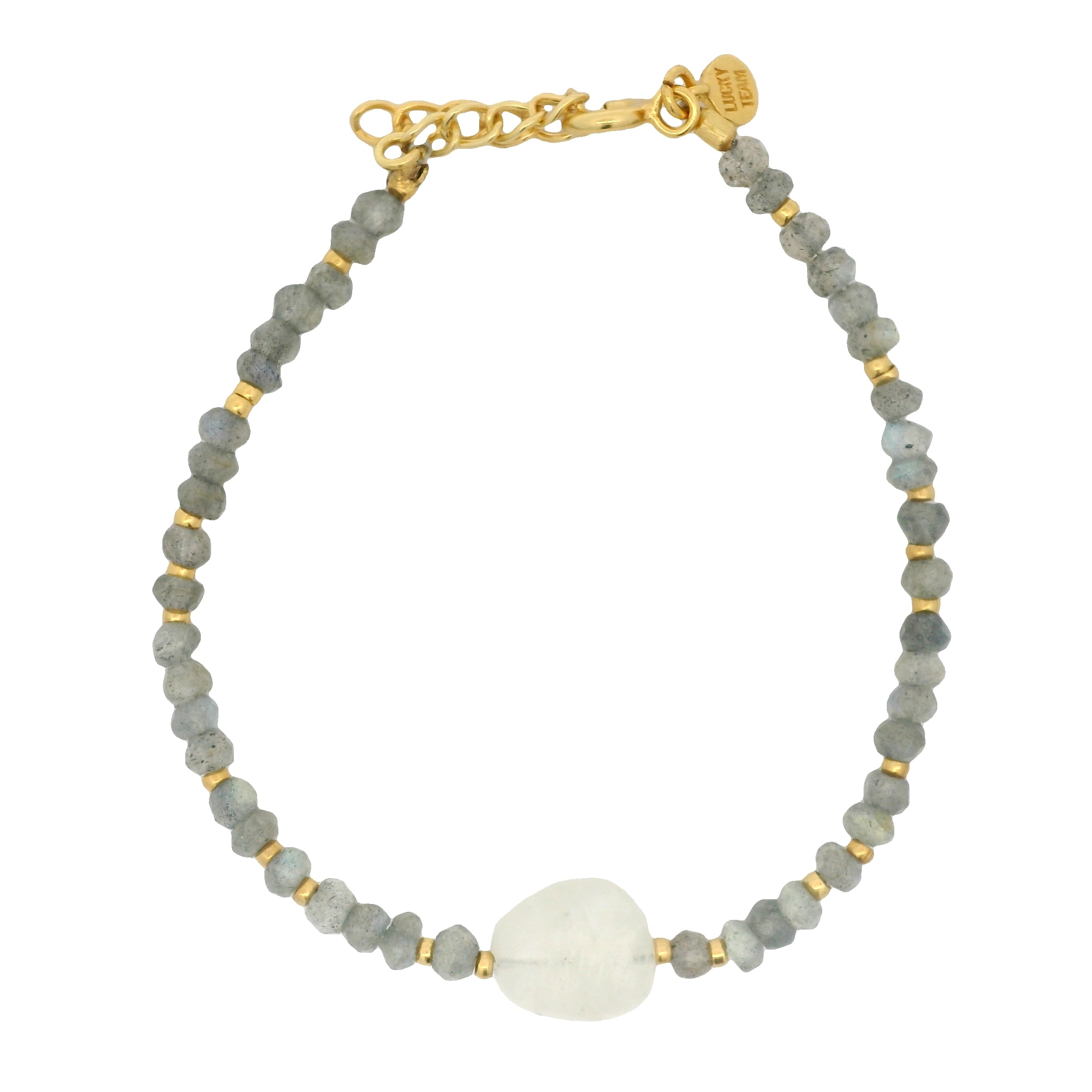 Labradorite et Pierre de Lune au centre avec des disques dorés
