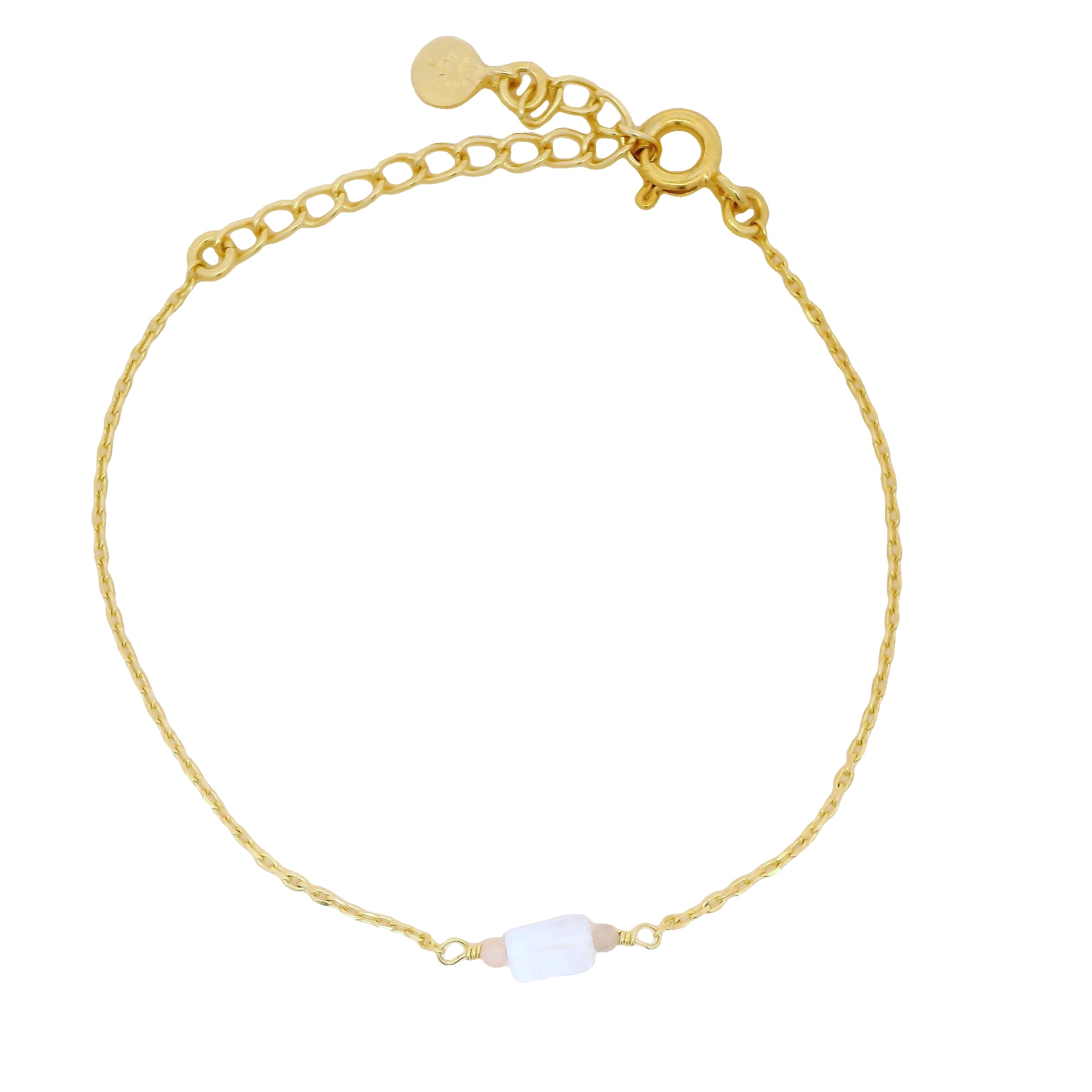 Bracelet doré pierre de lune rectangle et pierre de lune pêche autour
