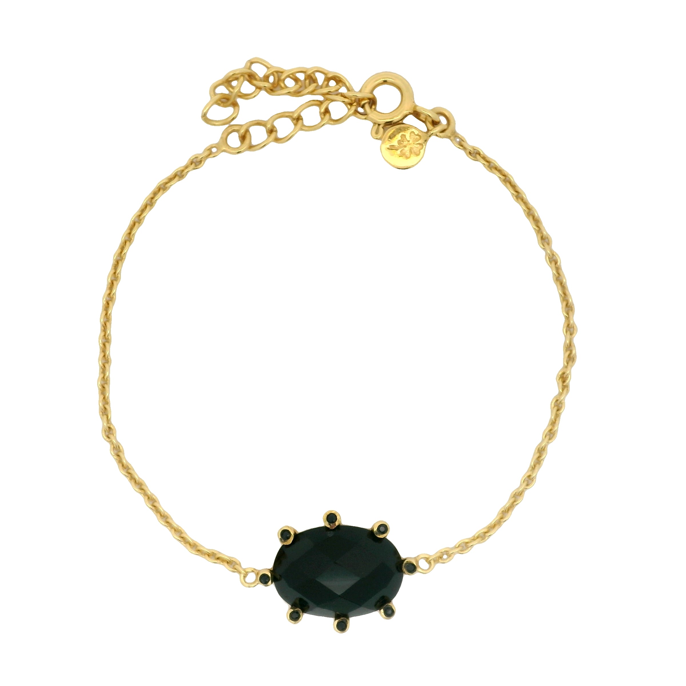 Bracelet doré onyx noire ovale et zircons noirs