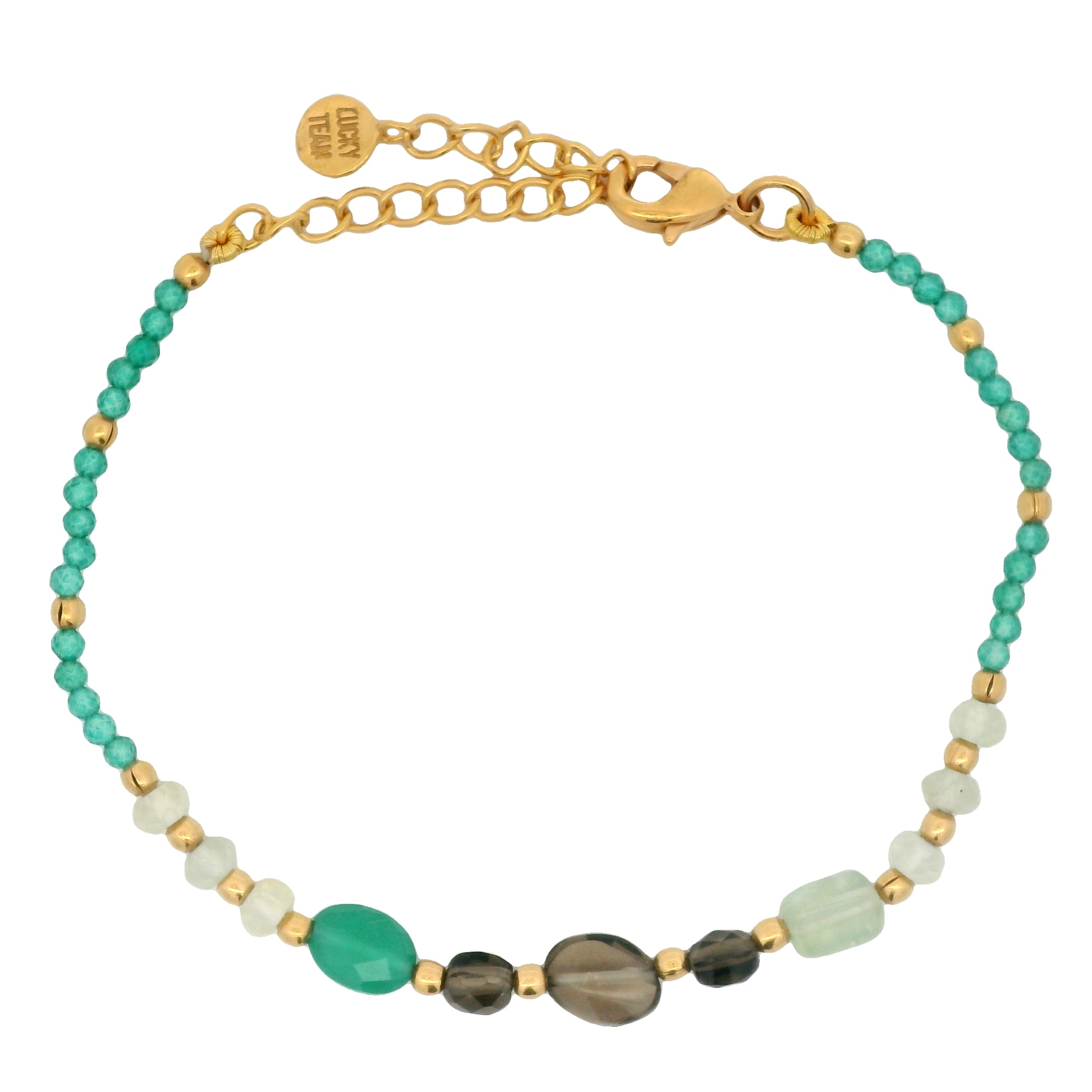 Onyx verte, prehnite, quartz fumé et petites boules dorées