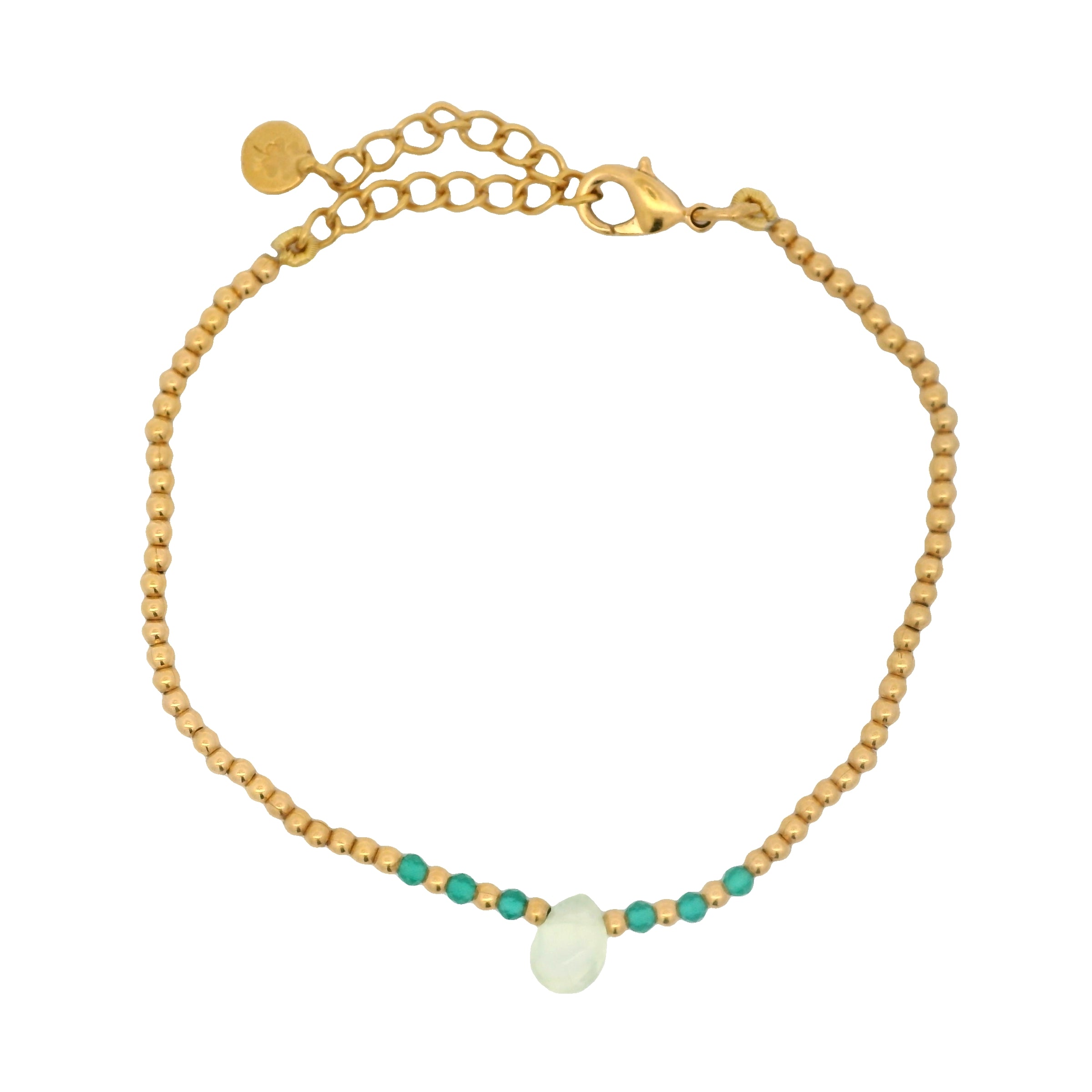Bracelet doré onyx verte et prehnite avec boules dorées