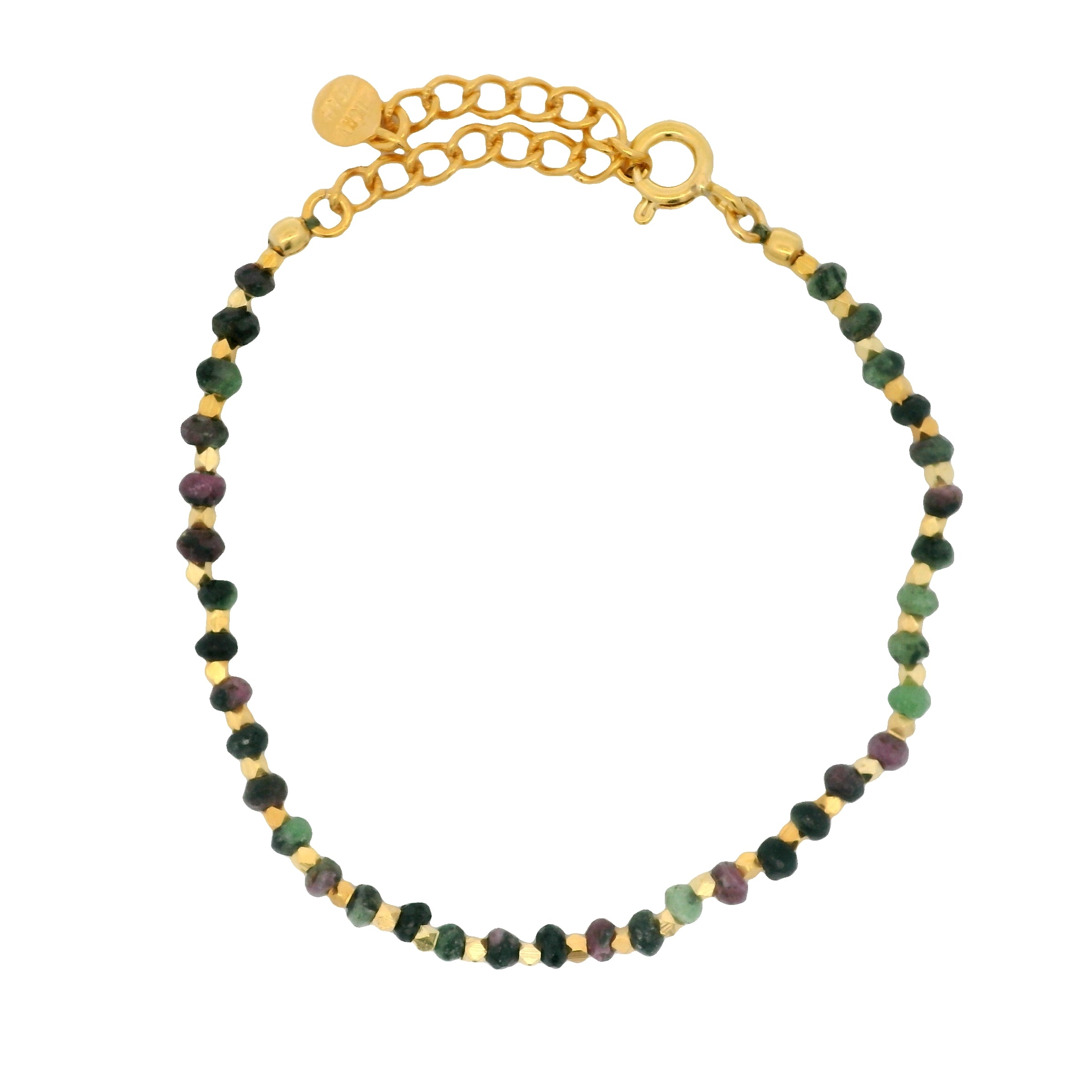 Bracelet doré alternance de rubis zoisite et boules facettées
