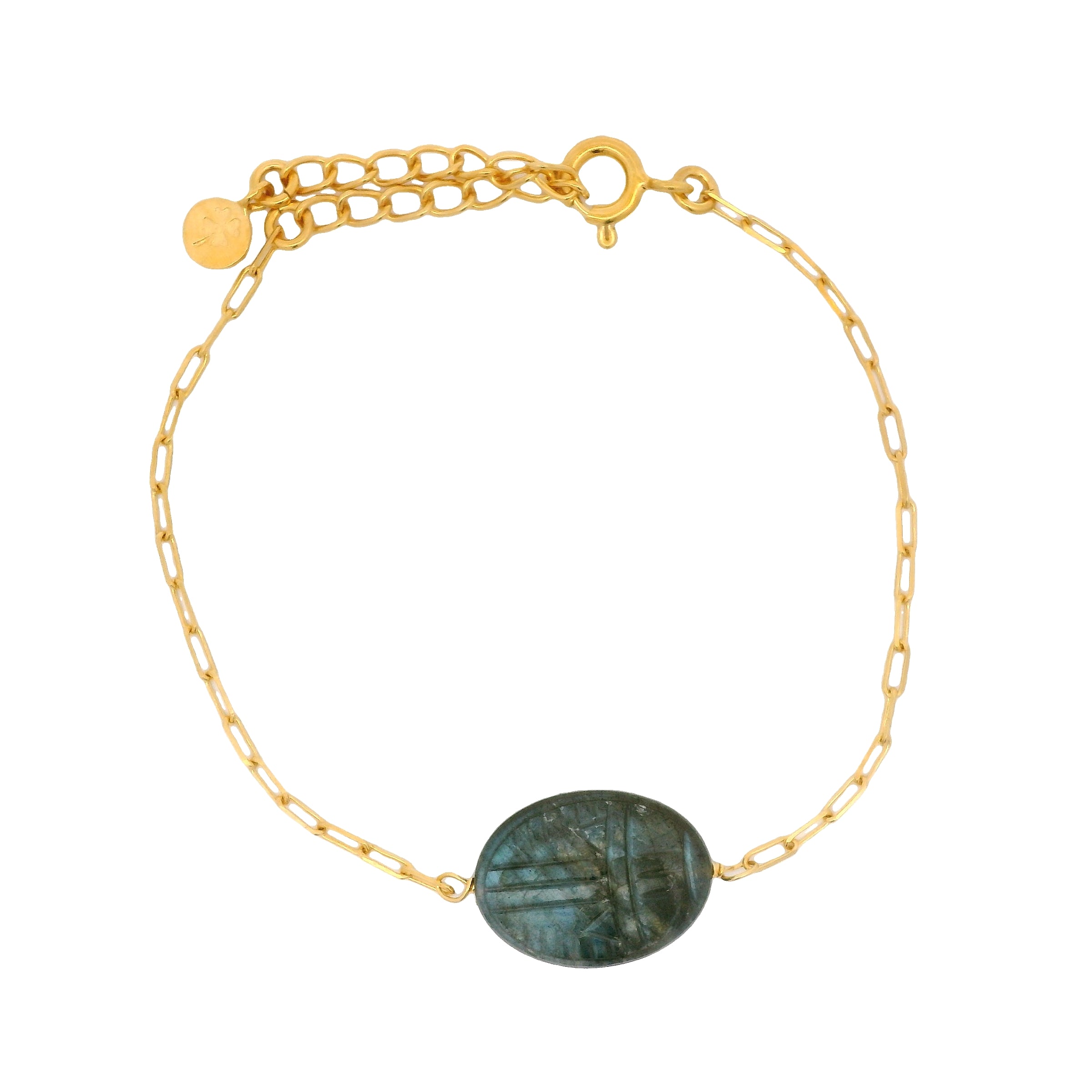 Bracelet doré scarabée taillé dans la pierre labradorite