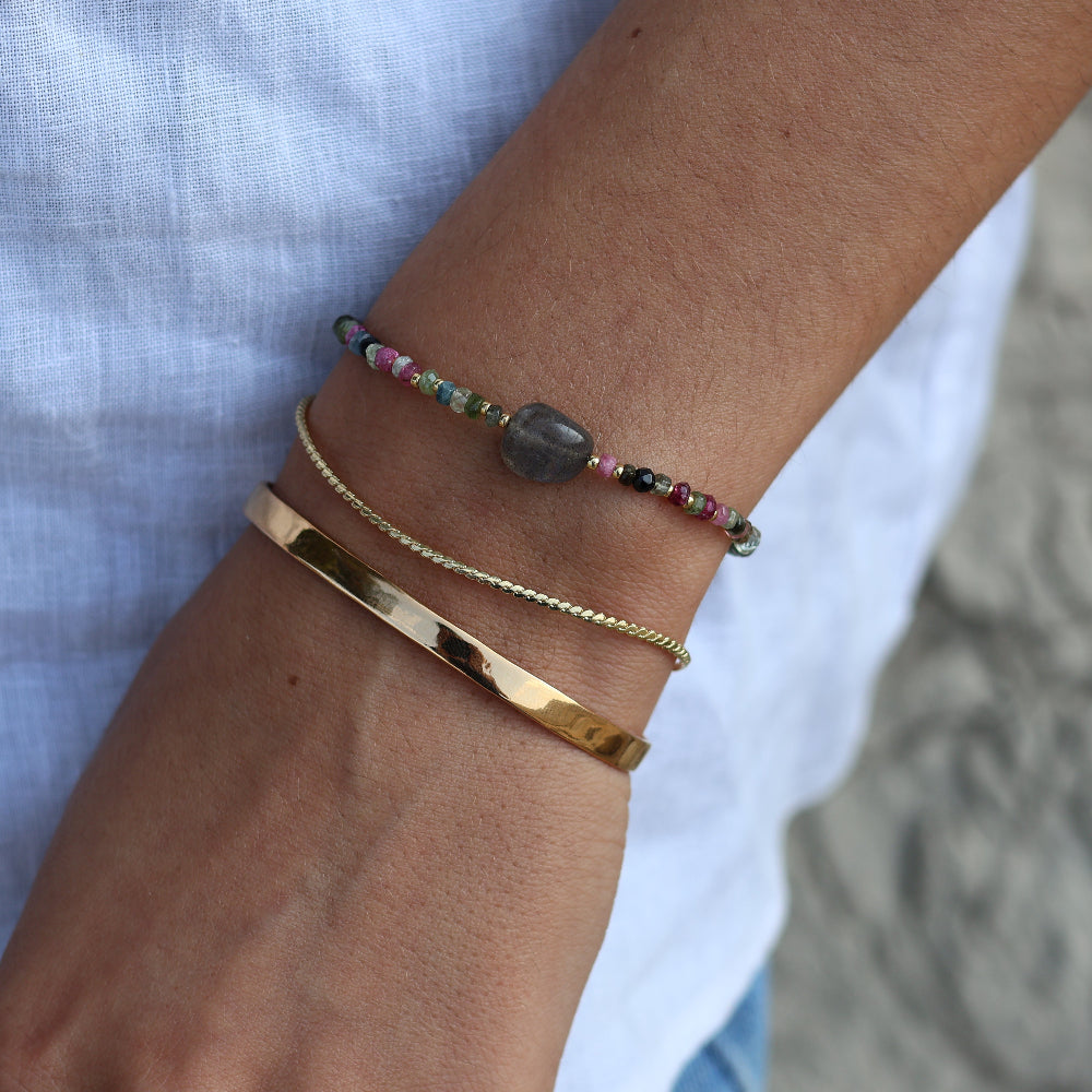 Bracelet doré tourmaline avec pierre centrale en labradorite