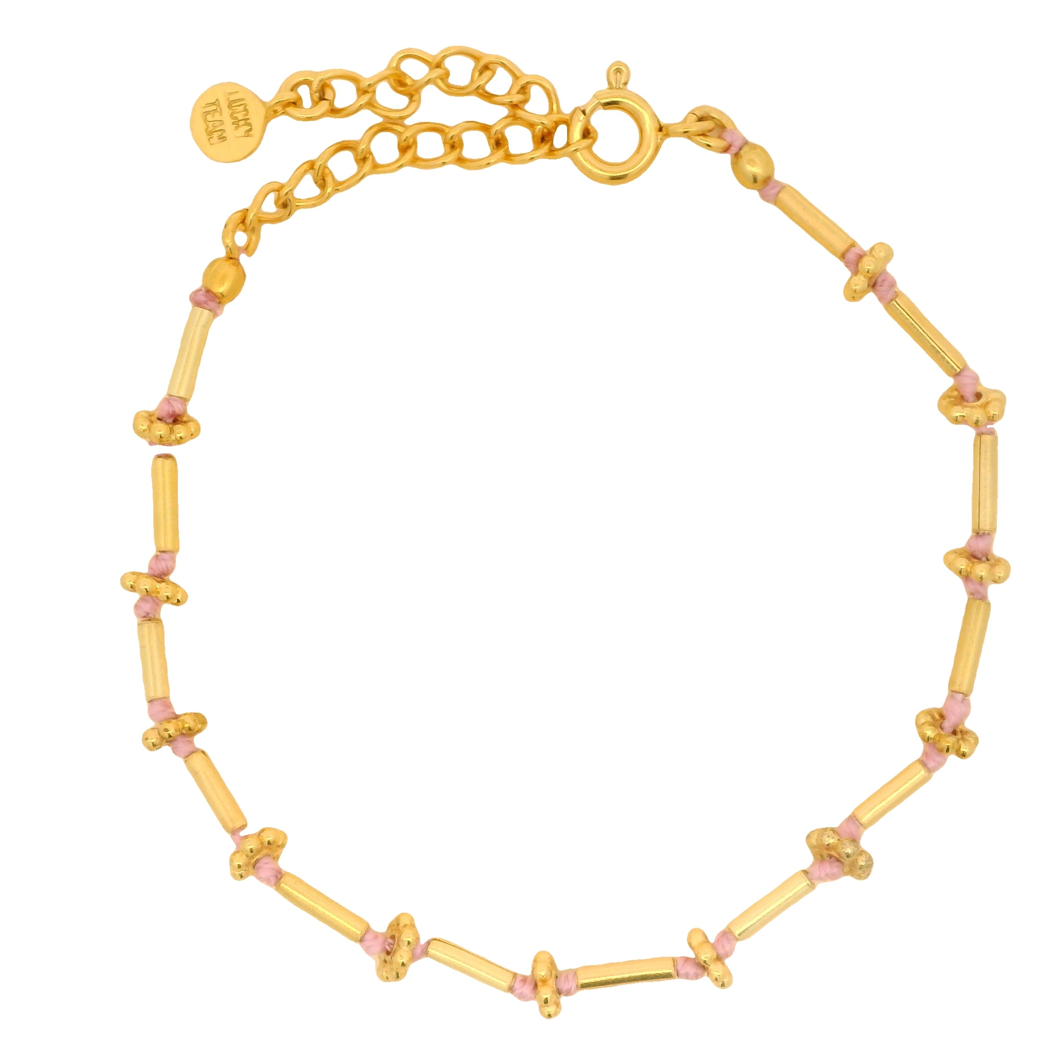 Bracelet doré avec tourmaline rose, couronnes et tubes dorés