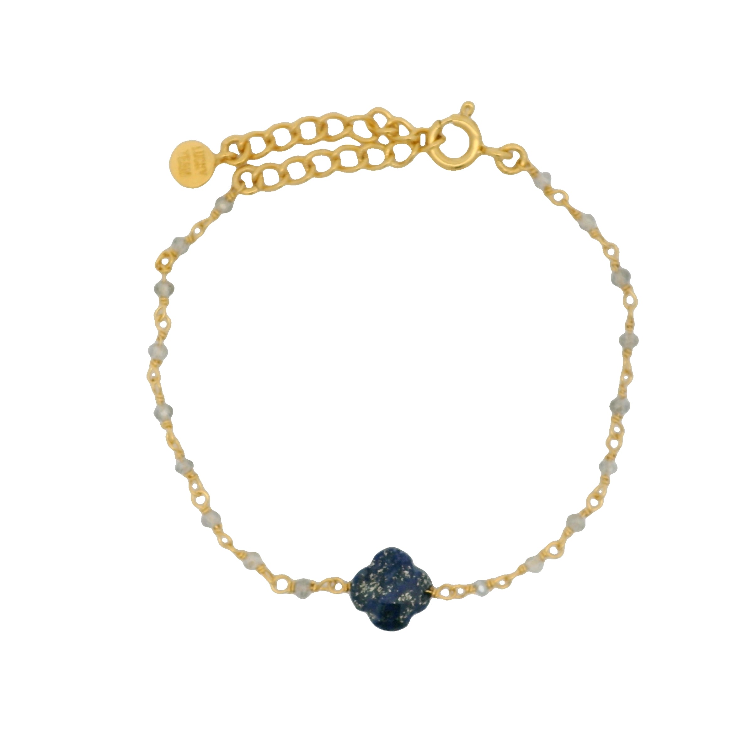 Bracelet doré trèfle en lapis lazulis facettée et labradorite