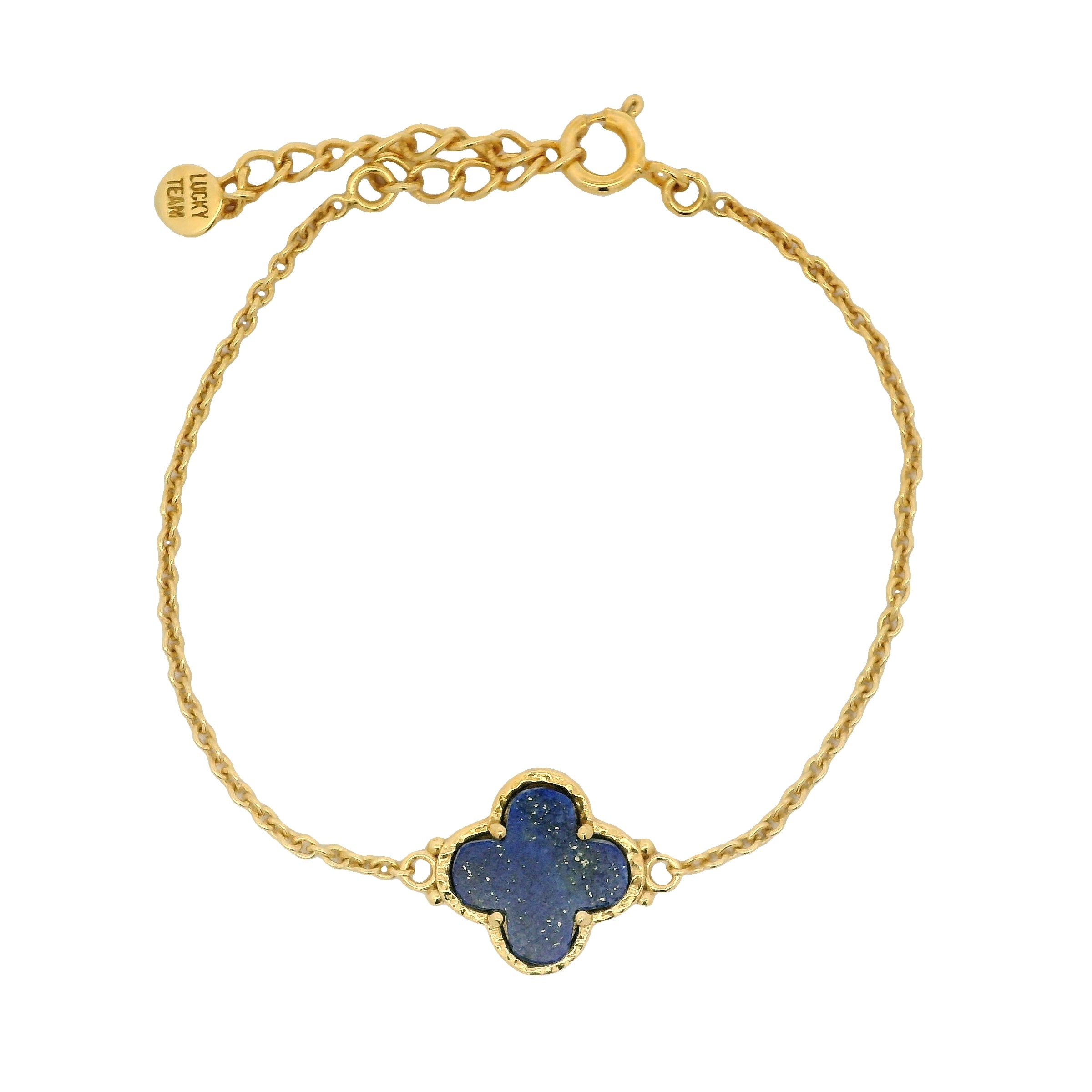 Bracelet doré trèfle lapis lazulis serti 4 griffes
