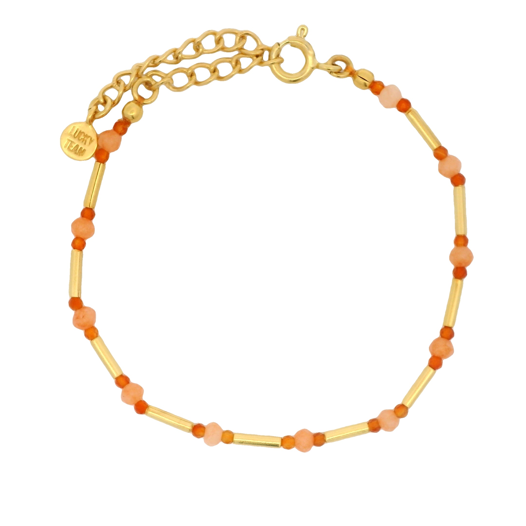 Bracelet doré Pierre de Lune orange et Cornaline avec tubes