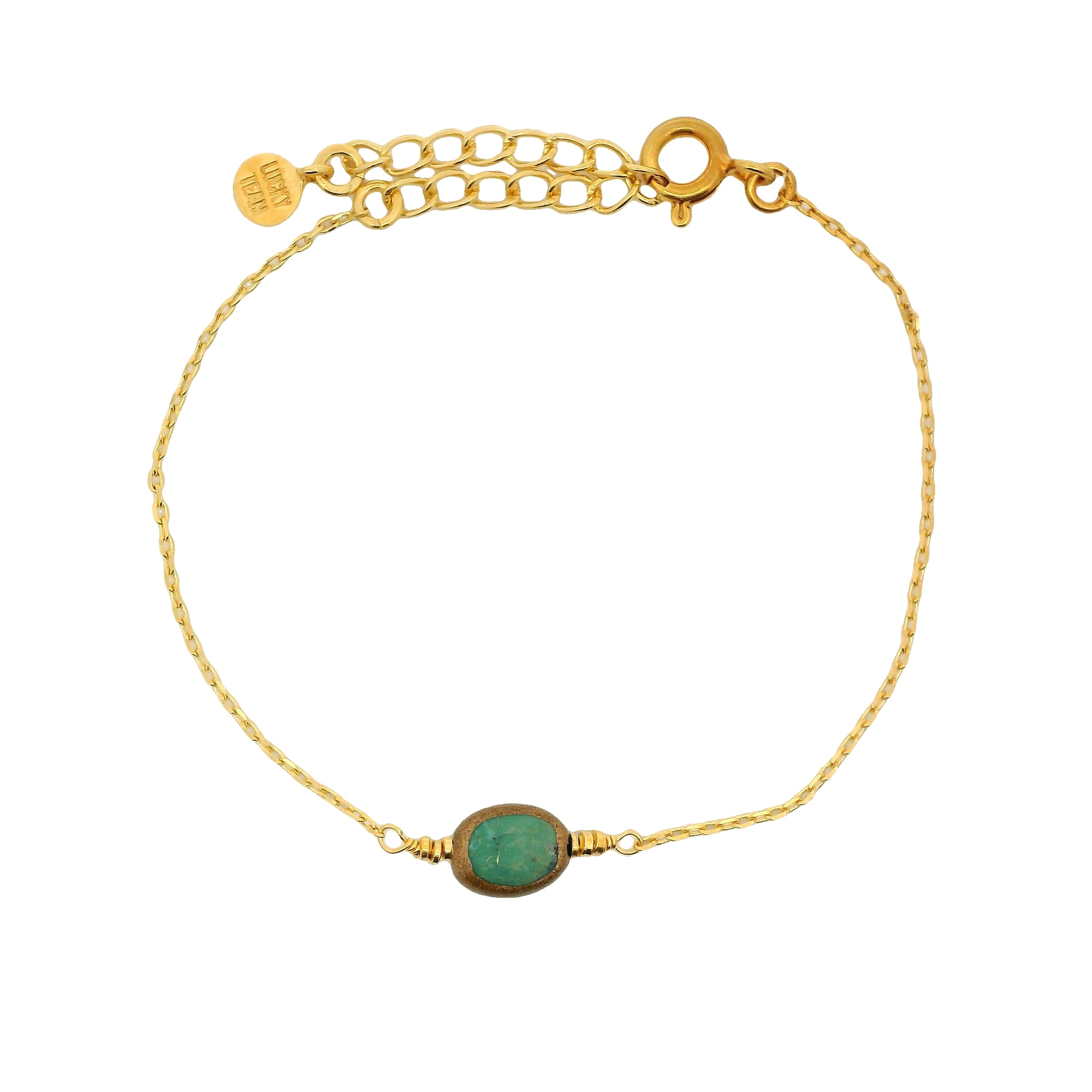 Bracelet doré avec turquoise ovale et disques dorés