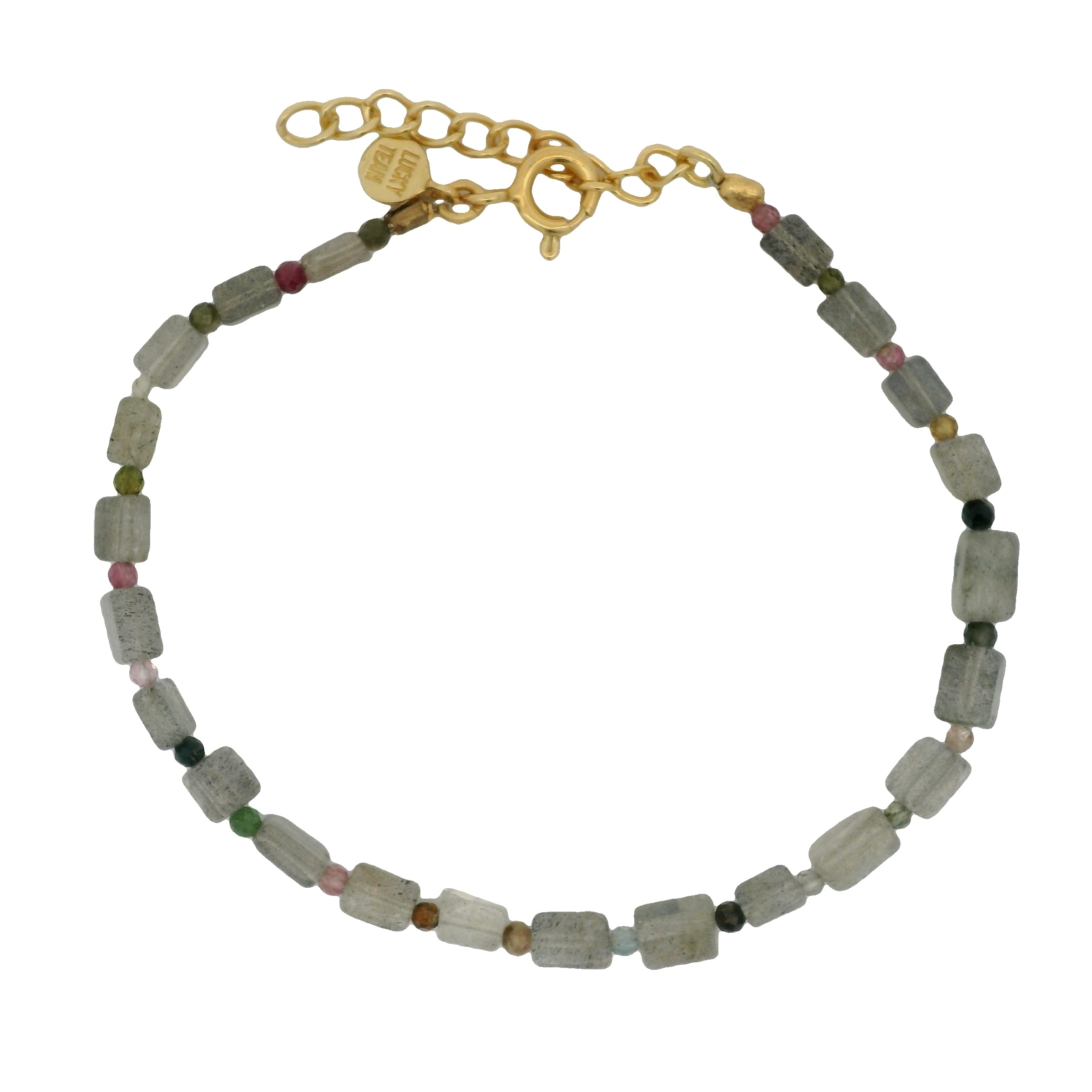 Bracelet doré duo pierres carrées et ronde labradorite et tourmaline