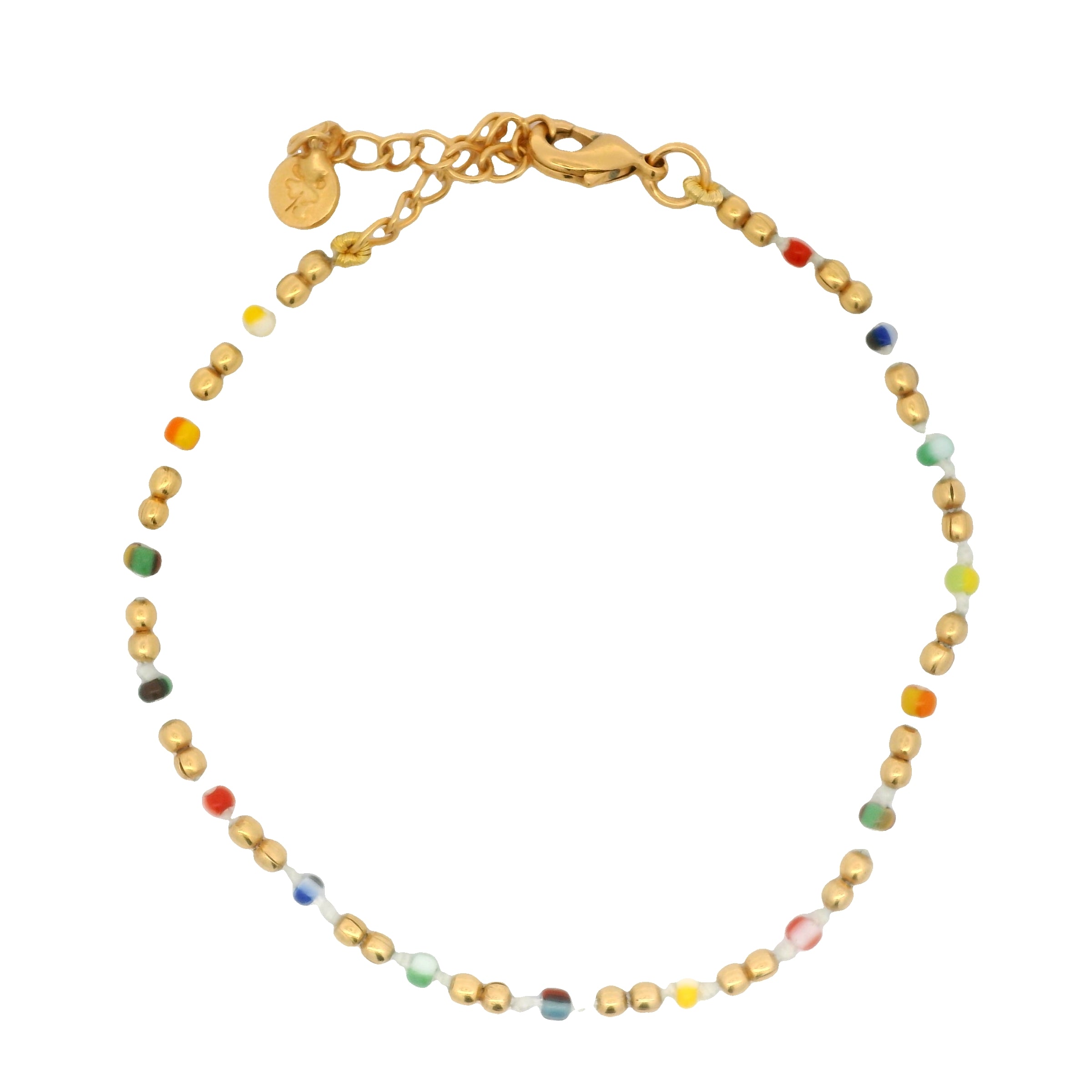 Bracelet doré en perles multicolores et boules dorées