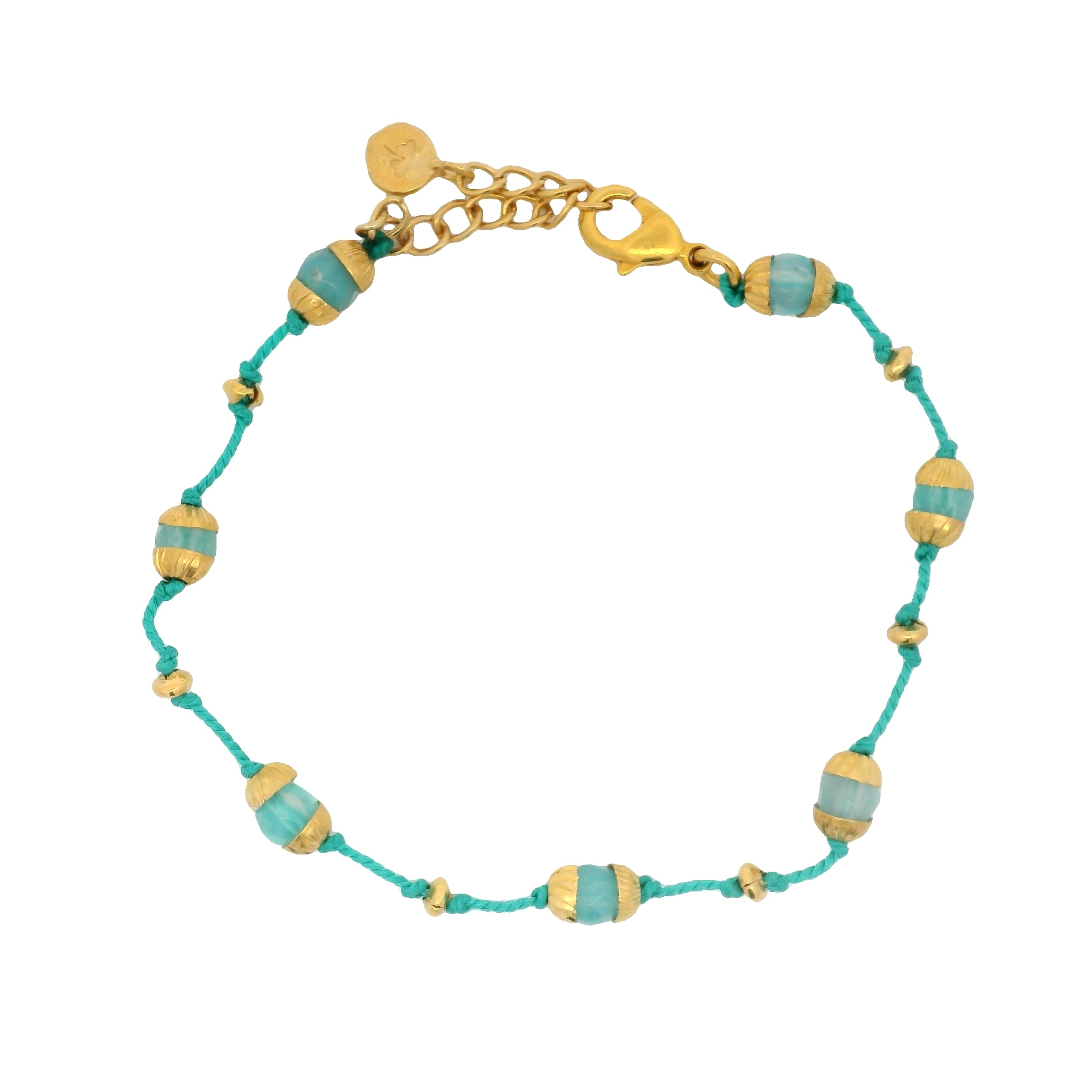 Bracelet doré fil bleu avec coupoles dorées et Agathe Bleue
