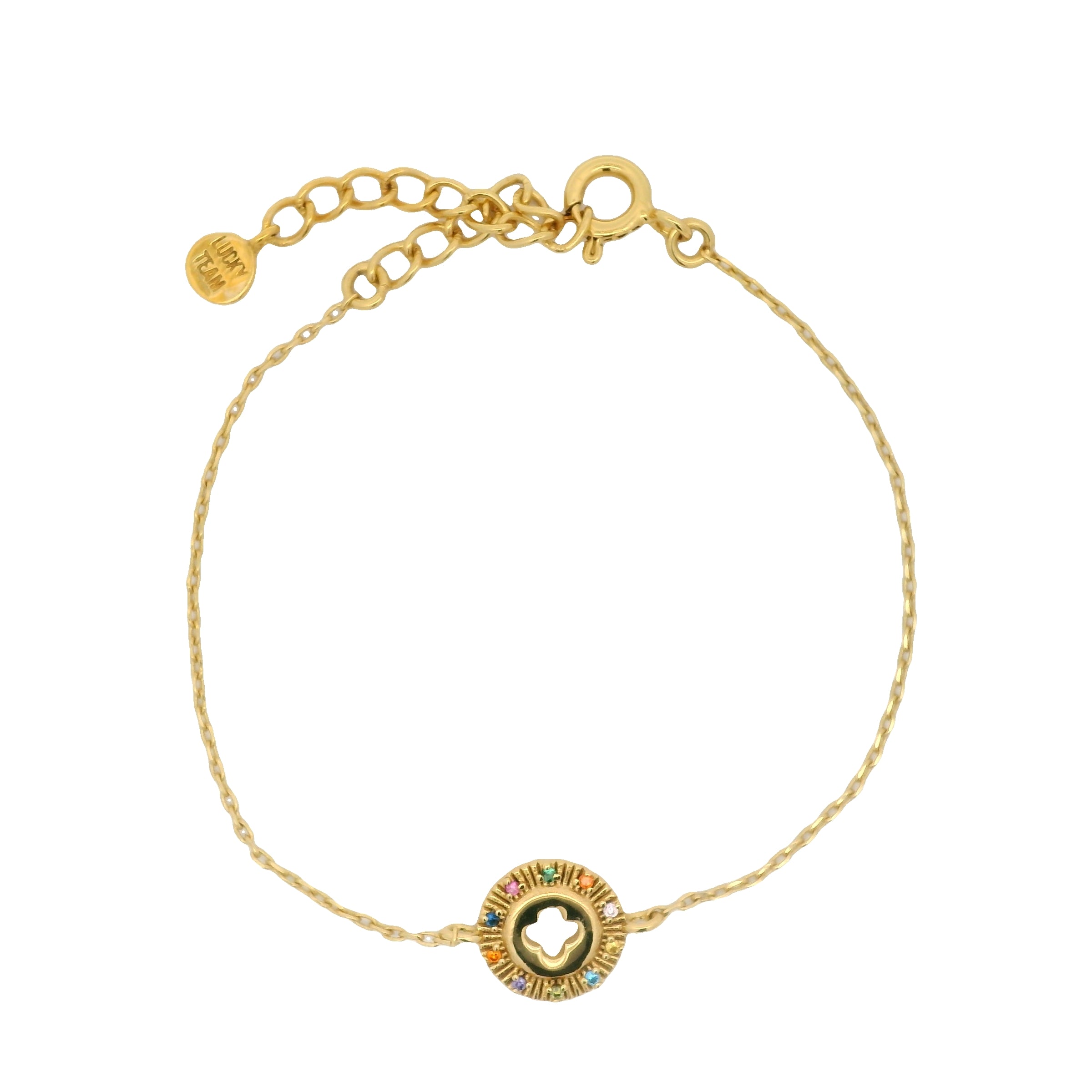 Bracelet doré médaille avec trèfle et zircons multicolores