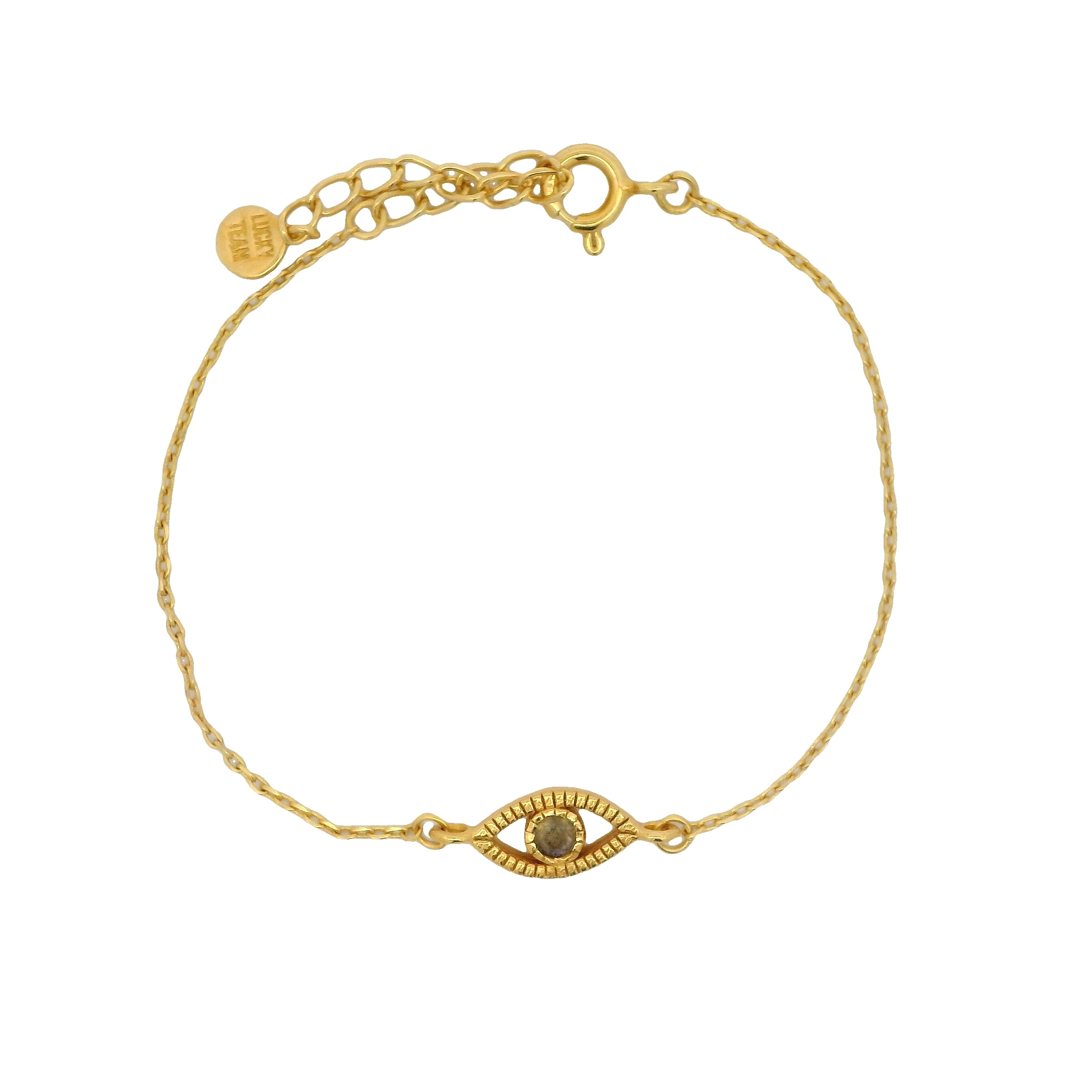 Bracelet doré oeil oval ajouré texturé en labradorite