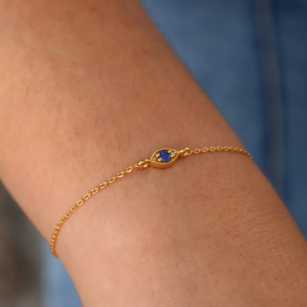 Bracelet doré à l'or fin 18K petit oeil pierre naturelle au centre et zircons blancs