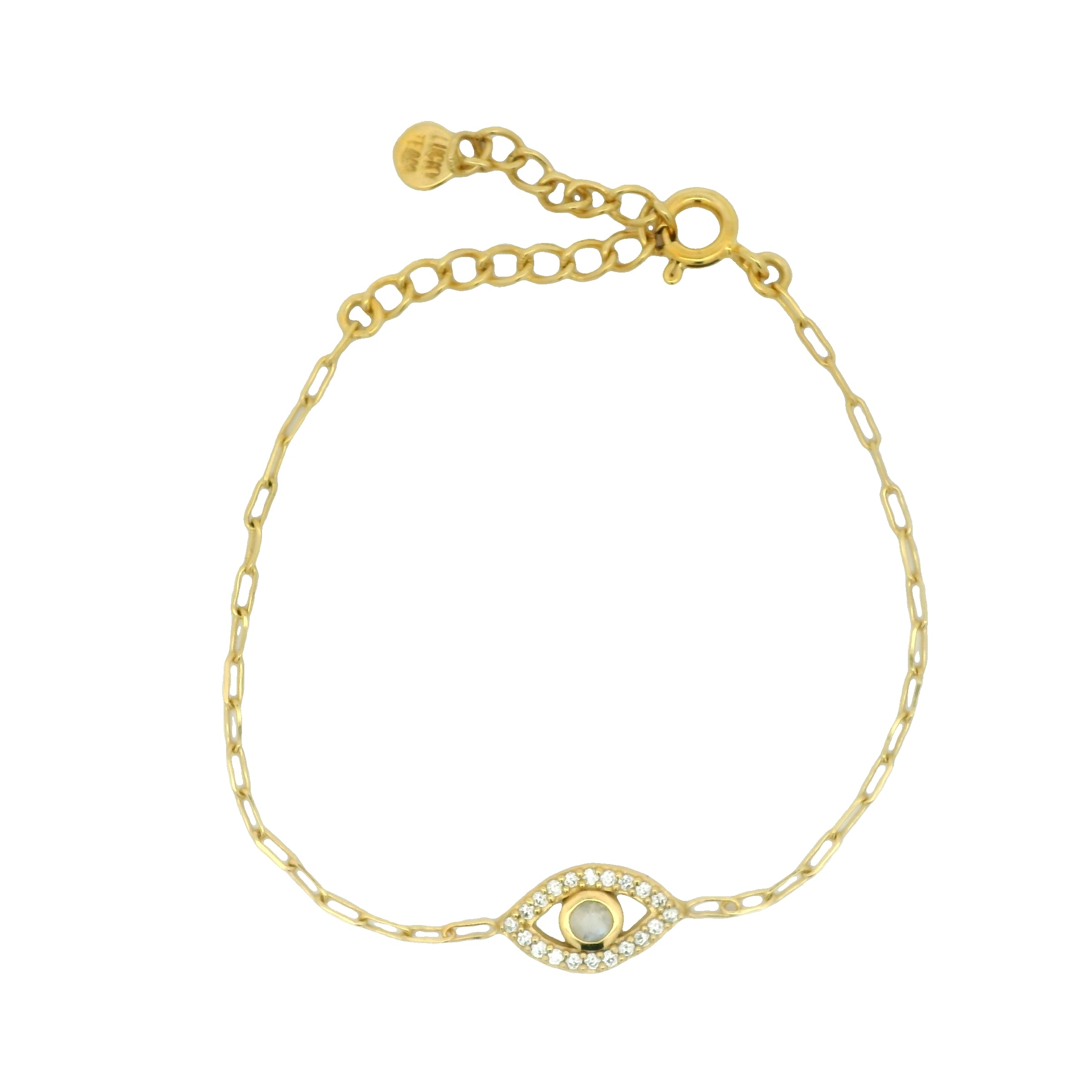 Bracelet petit oeil oval avec pierre de lune et zircons blancs