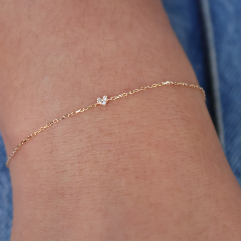 Bracelet en or 10 carats et symbole coeur pavé de diamants de 0,01 carats.