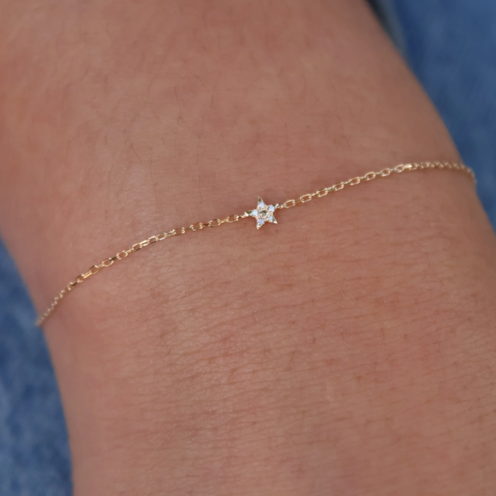 Bracelet en or 10 carats et symbole étoile pavé de diamants de 0,01 carats.
