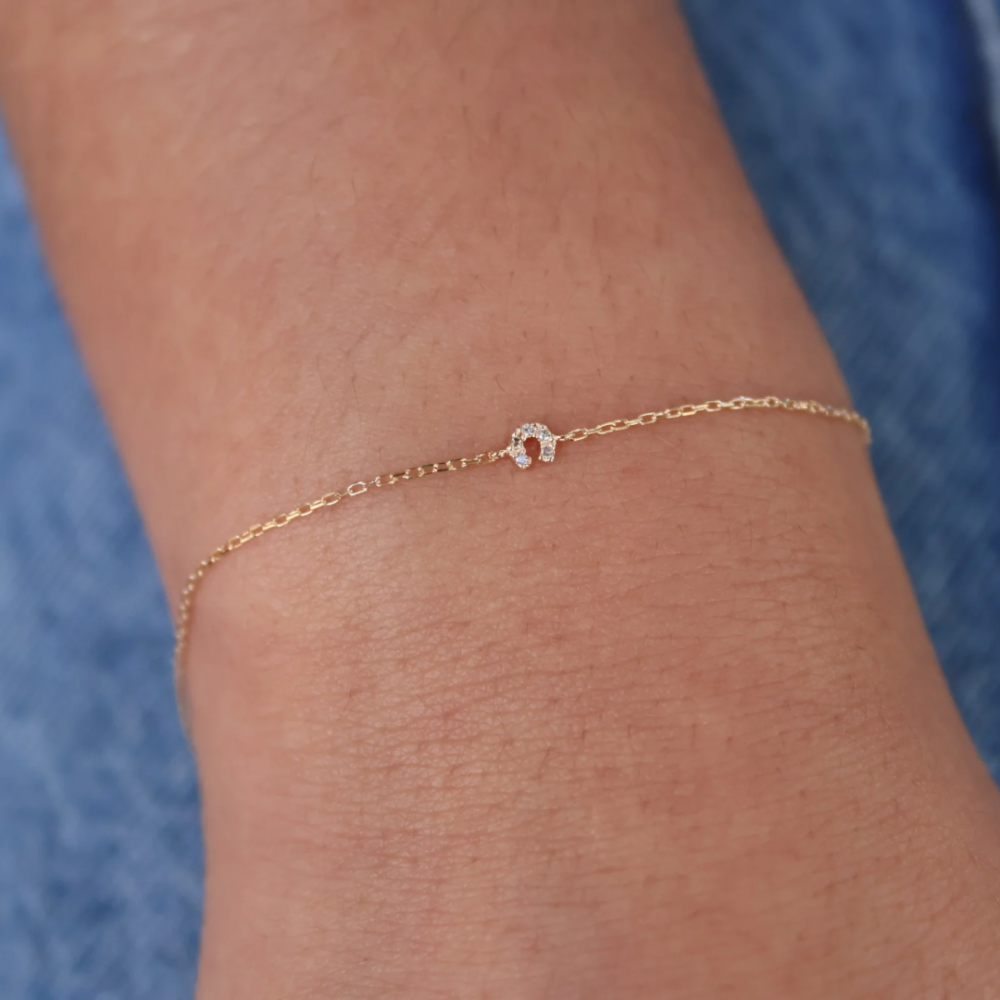 Bracelet en or 10 carats et symbole fer à cheval pavé de diamants de 0,01 carats.