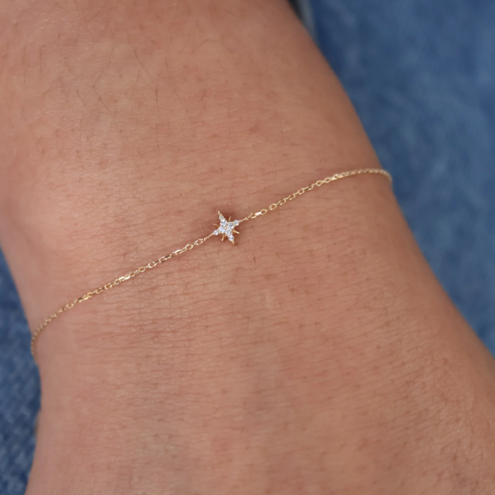 Bracelet en or 10 carats et symbole rose des vents pavé de diamants de 0,01 carats.