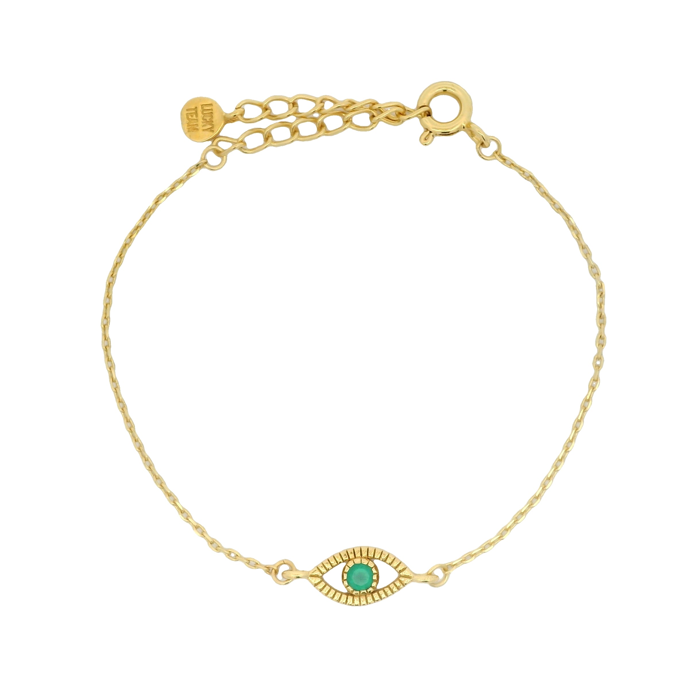 Bracelet doré petit oeil texturé évidé en Onyx verte