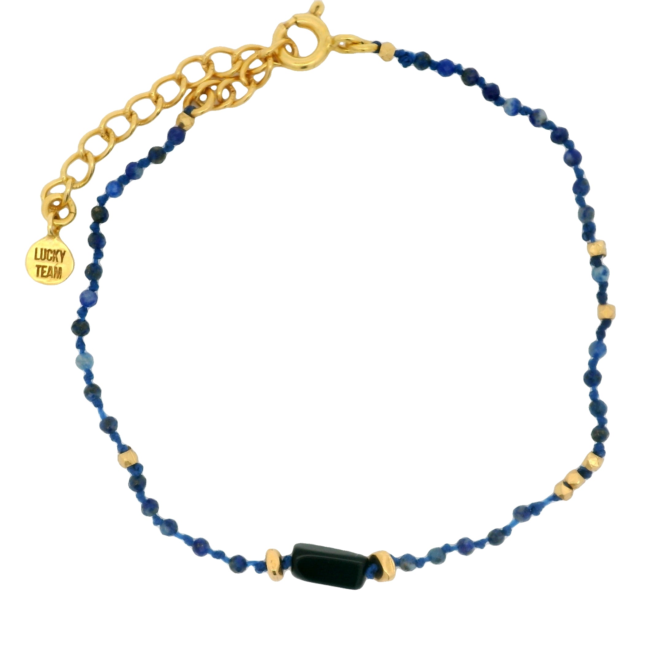 Bracelet doré Onyx noire rectangulaire et Lapis lazulis