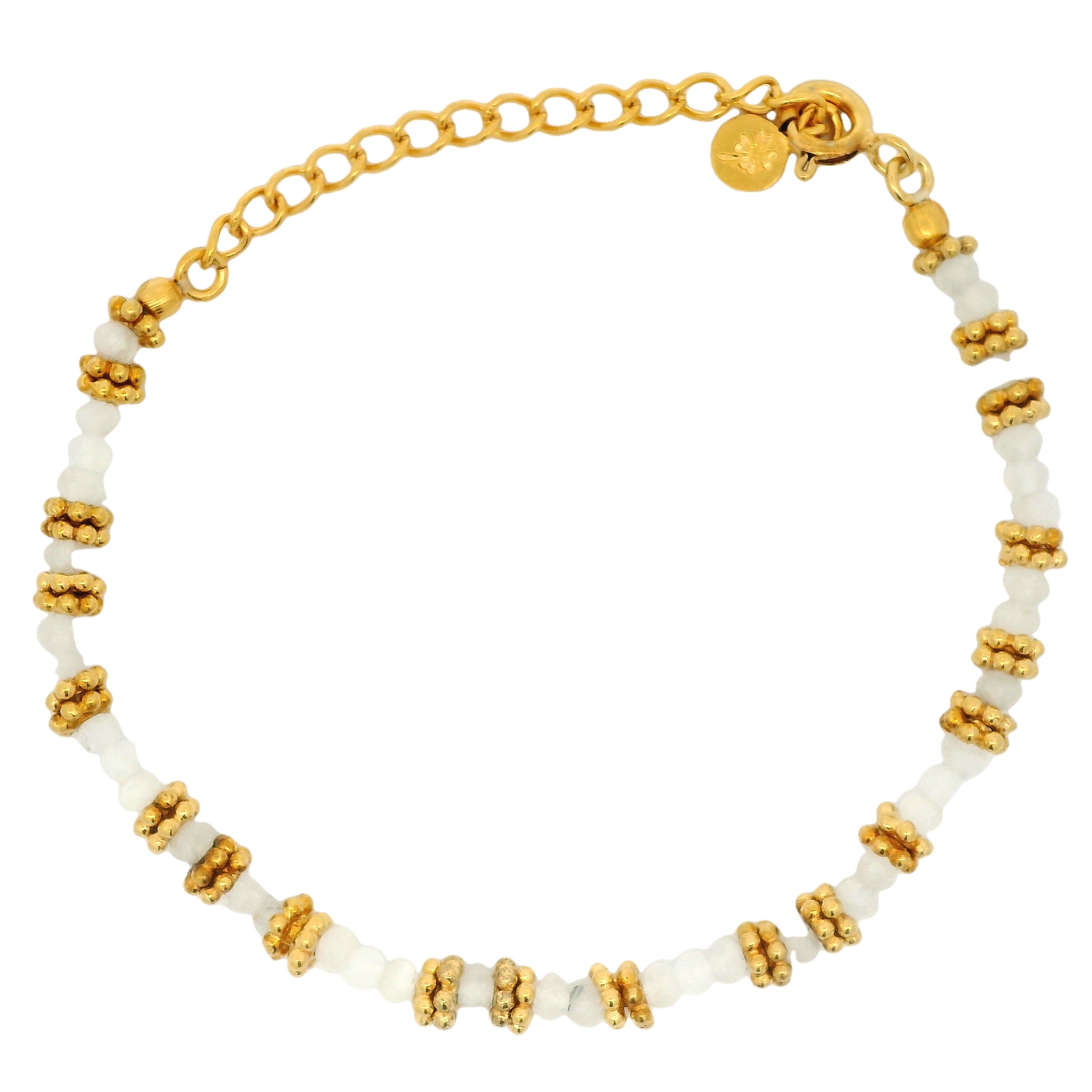 Pierre de lune facettée, espacée avec des petites couronnes dorées