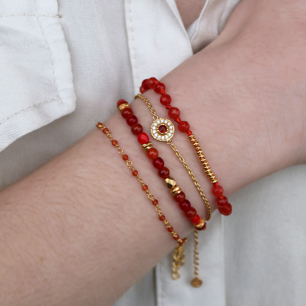 Pierres naturelles facettées séparées par des noeuds. Disques en laiton doré à l'or fin 18k.