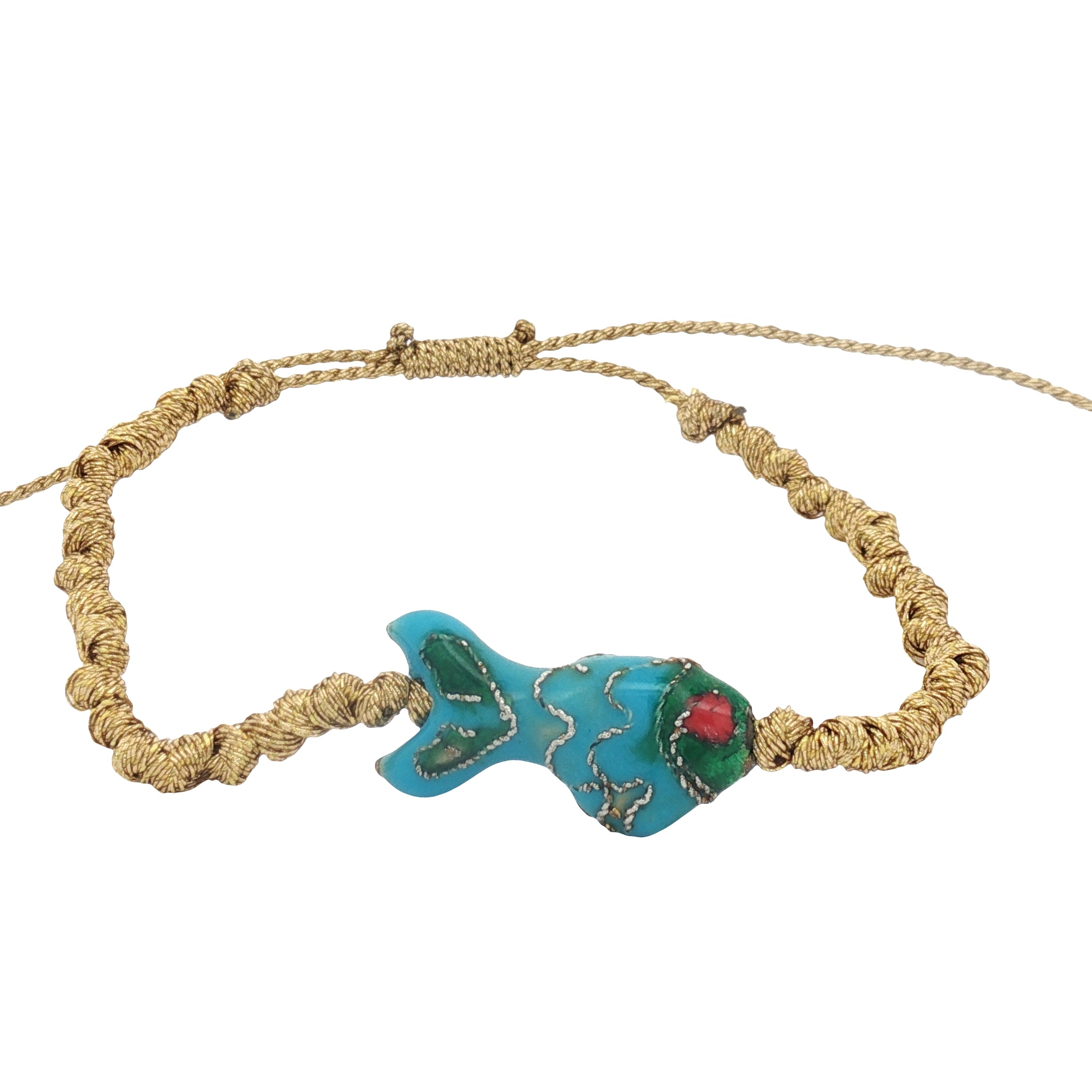 Bracelet cordon tressé doré poisson bleu