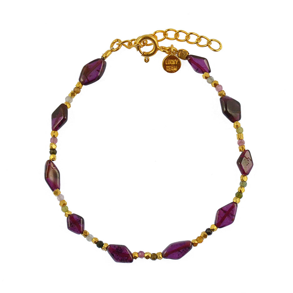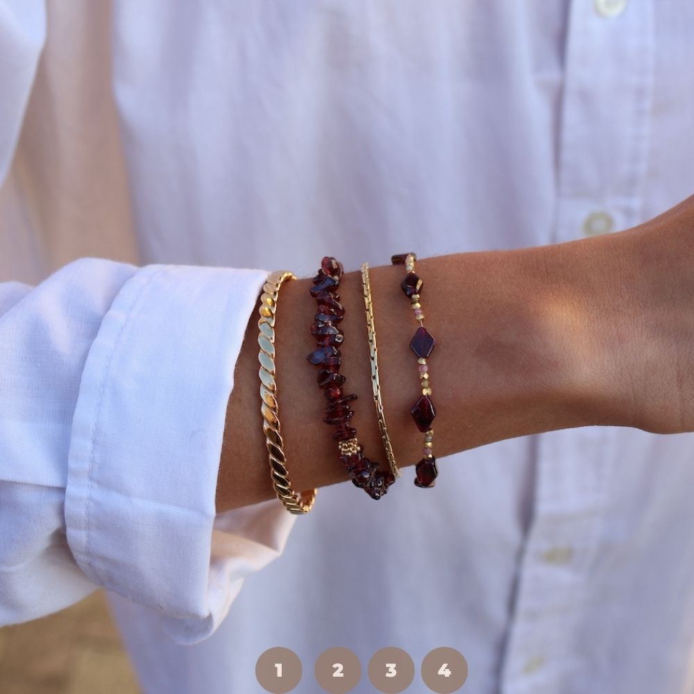 4 - Bracelet en laiton doré 18K grenat et tourmaline