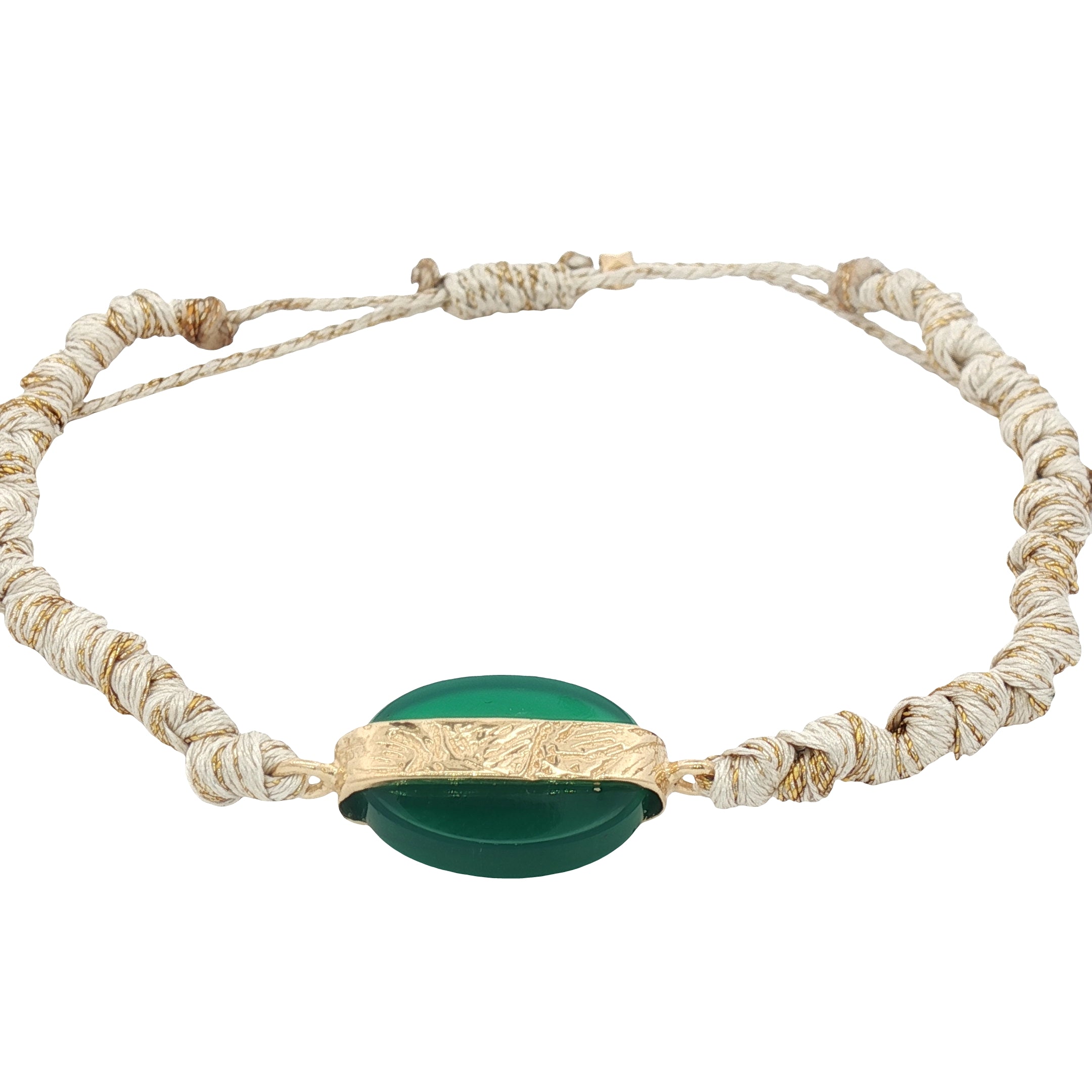 Bracelet cordon doré et pierre facettée - ONYX VERTE