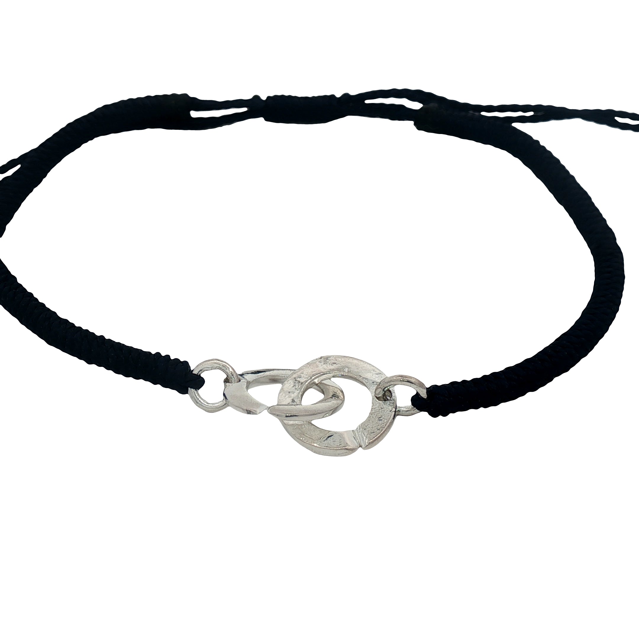 Bracelet cordon bleu marine menottes argent 925